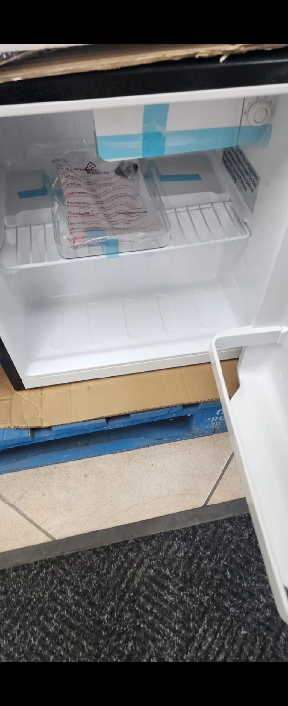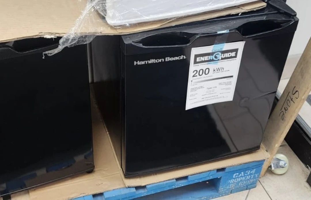 The Hamilton Beach mini fridge is an open box minor scratch/dent 1.6 cu.ft fridge.