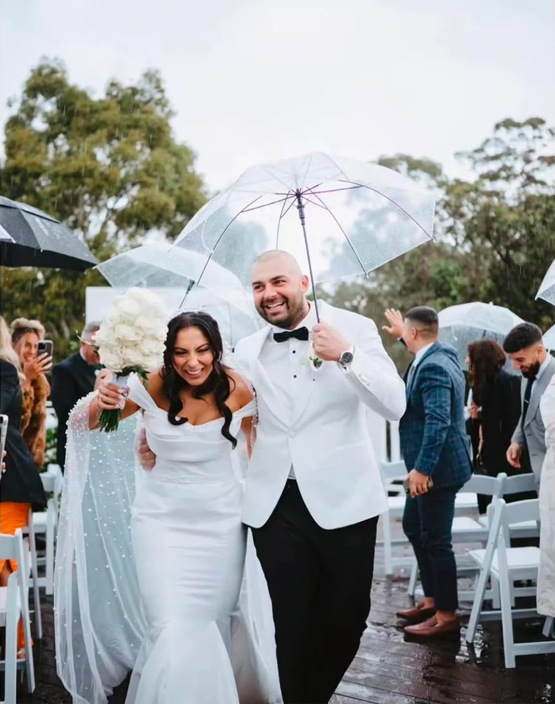 This clear bubble umbrella is perfect for weddings or parties! It's lightweight and portable, making it easy to carry around. The dimensions are approximately 108cm in diameter, 77cm in height, and 90cm in width when open. Great for keeping dry in style!