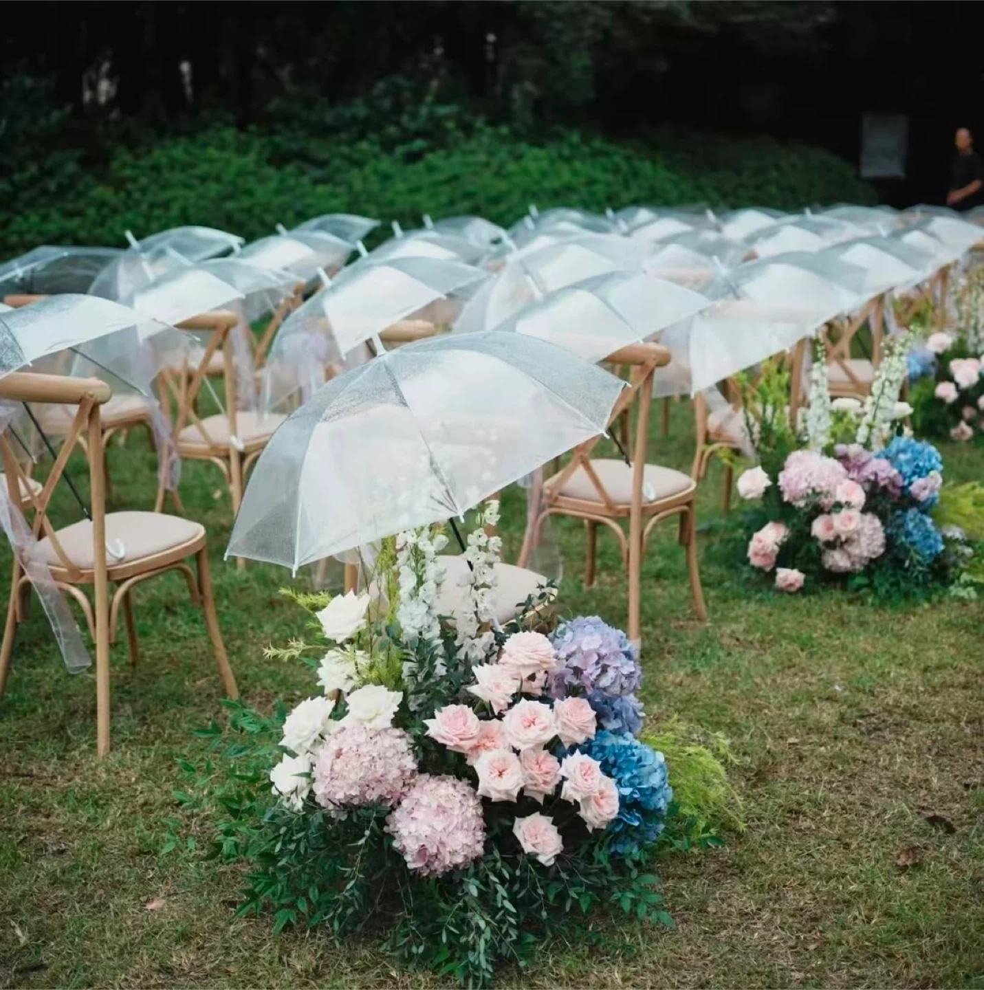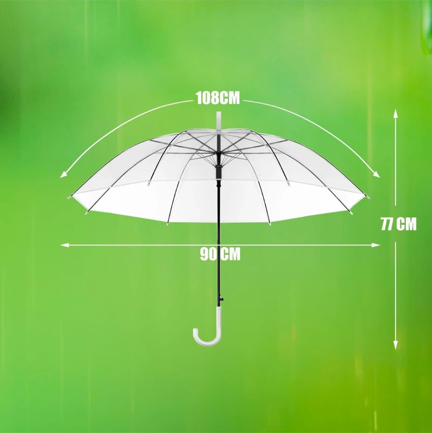 This clear bubble umbrella is perfect for weddings or parties! It's lightweight and portable, making it easy to carry around. The dimensions are approximately 108cm in diameter, 77cm in height, and 90cm in width when open. Great for keeping dry in style!