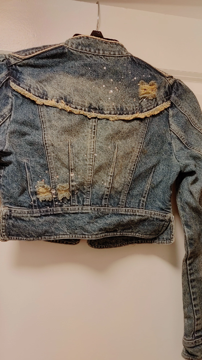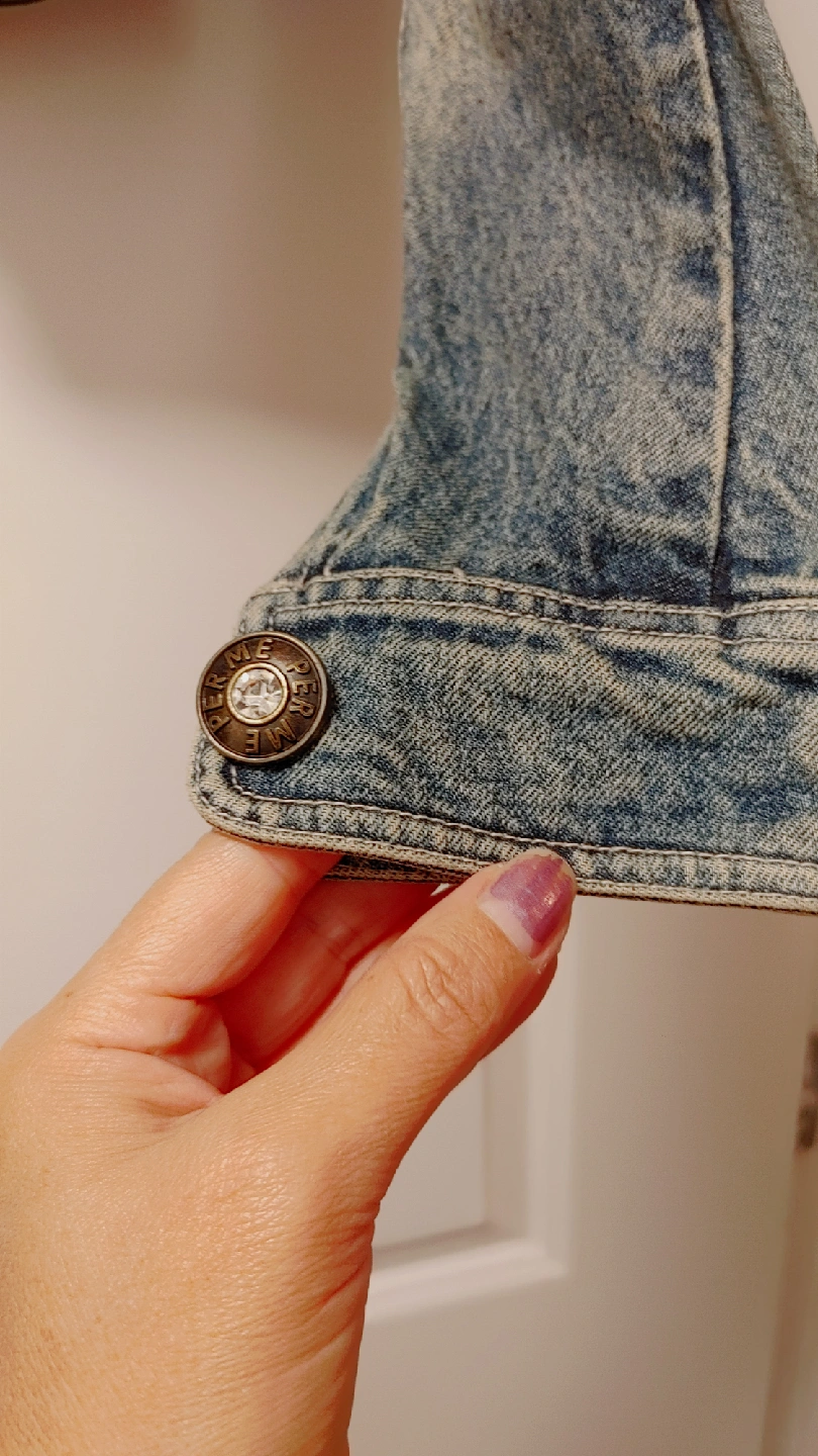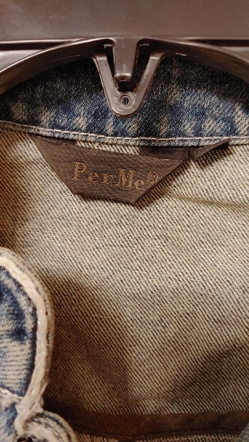 63Selling a cute Per Me denim jacket in a size PM! It's a stylish piece with a unique design. Perfect for adding a bit of flair to any outfit