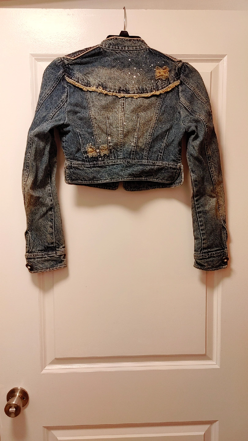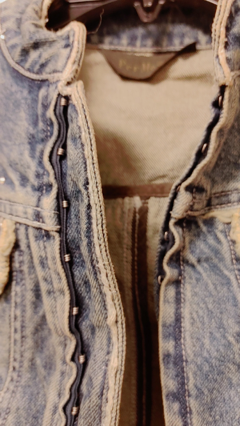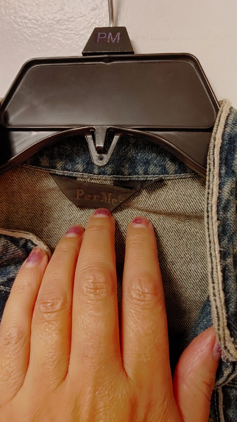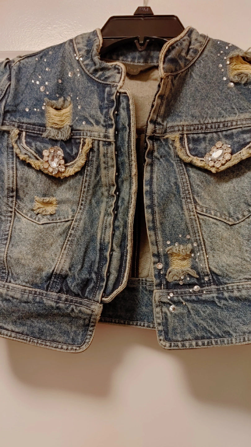 63Selling a cute Per Me denim jacket in a size PM! It's a stylish piece with a unique design. Perfect for adding a bit of flair to any outfit
