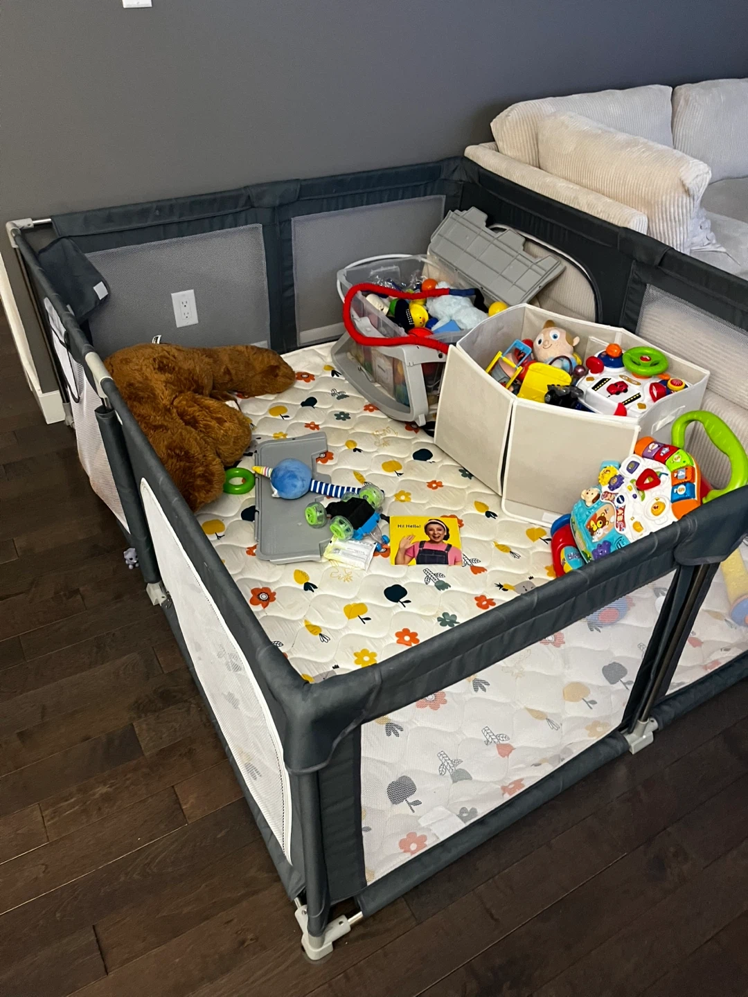 Selling a baby playpen in great condition! Perfect for keeping your little one safe and entertained. It's a sturdy and reliable play area. It comes with mat