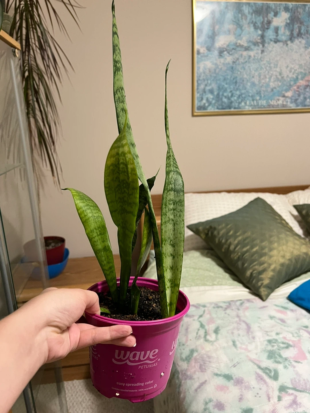 Selling a healthy snake plant potted in a 5 inch container! This plant is super easy to care for and adds a nice touch of greenery to any space