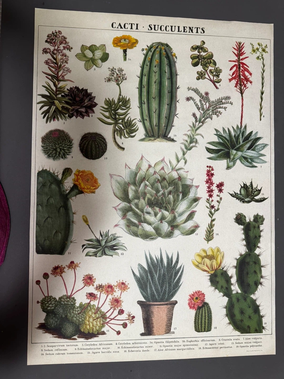 Two botanical prints featuring a dandelion and cacti/succulents. Great for adding a touch of nature to your home decor!