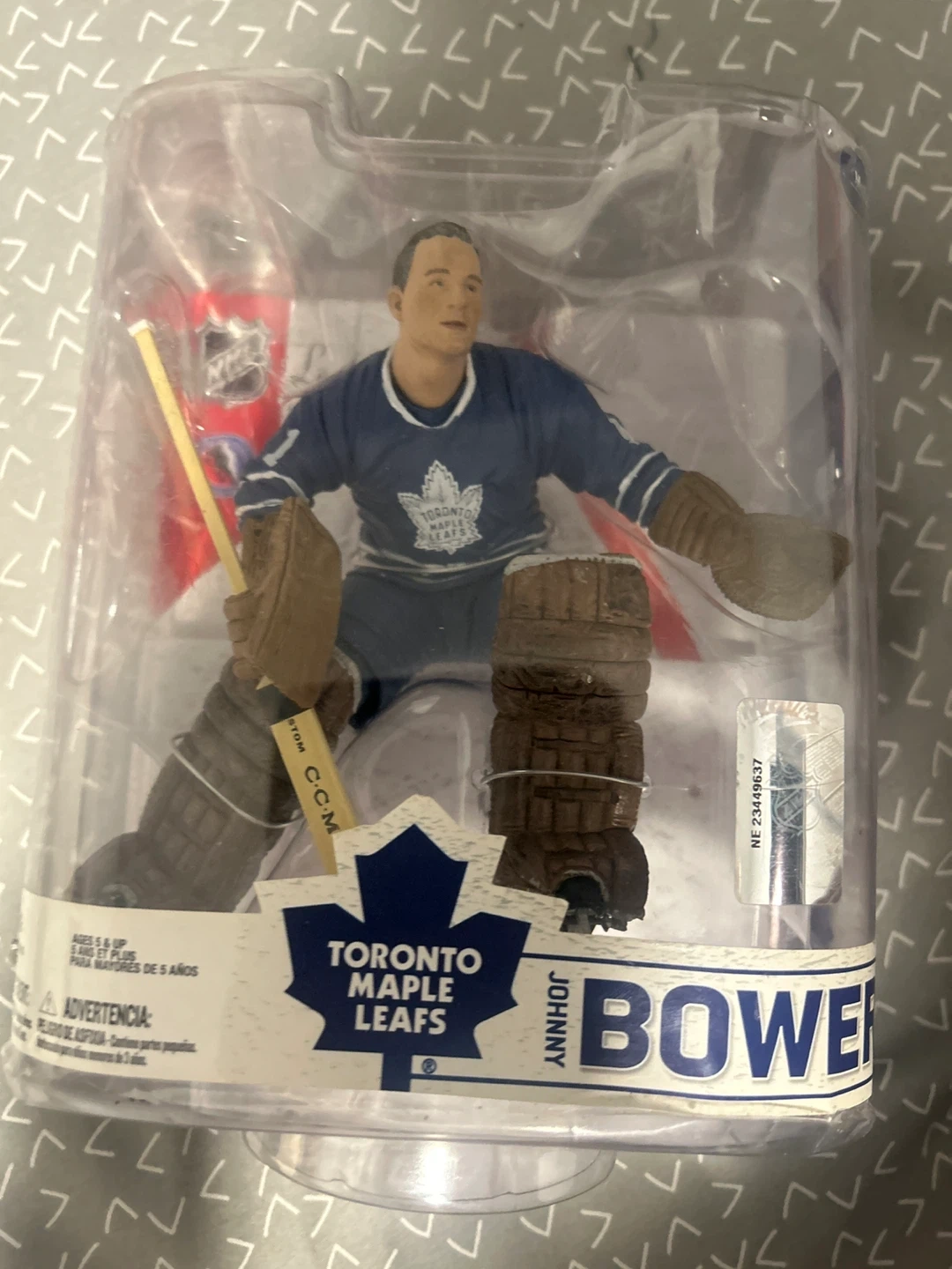 Selling a Johnny Bower Toronto Maple Leafs Legends Series figure by McFarlane Toys! This collectible figure captures the iconic goalie in his classic Maple Leafs uniform. A must-have for any hockey fan or collector!