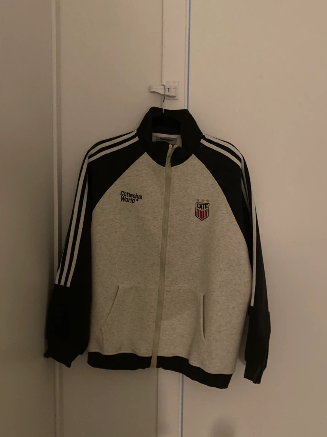 Selling a Cotteelus World track jacket. It's a stylish jacket with a unique design, perfect for casual wear or workouts. It features a full zip closure and comfortable fit!
