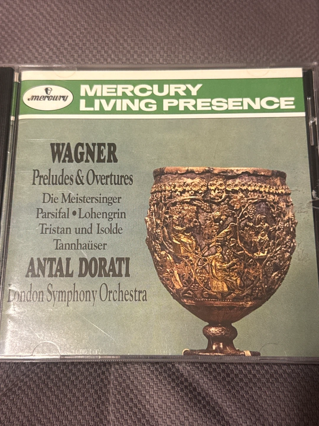 Selling a Wagner Preludes & Overtures CD from the Mercury Living Presence series, featuring Antal Dorati conducting the London Symphony Orchestra. A great addition to any classical music collection!
