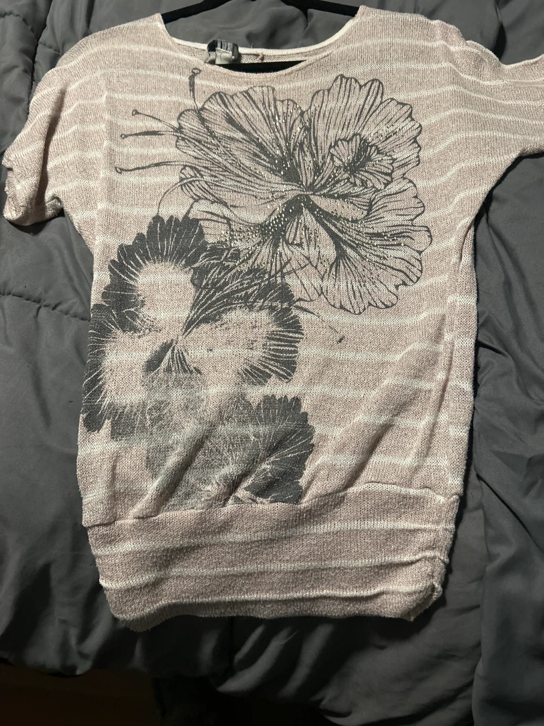 Selling a cute XXI top with a striped pattern and floral design! It's a size small. The material is lightweight and comfy, perfect for spring or summer
