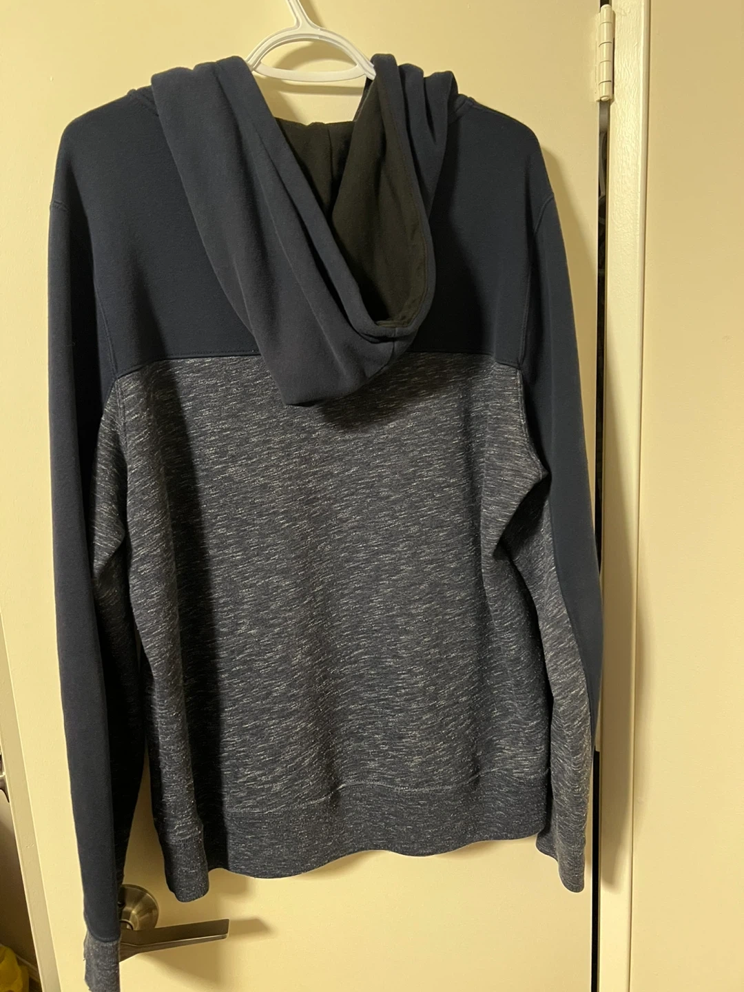 Selling a Hollister California hoodie in size large. It's in great condition and has a stylish two-tone design.