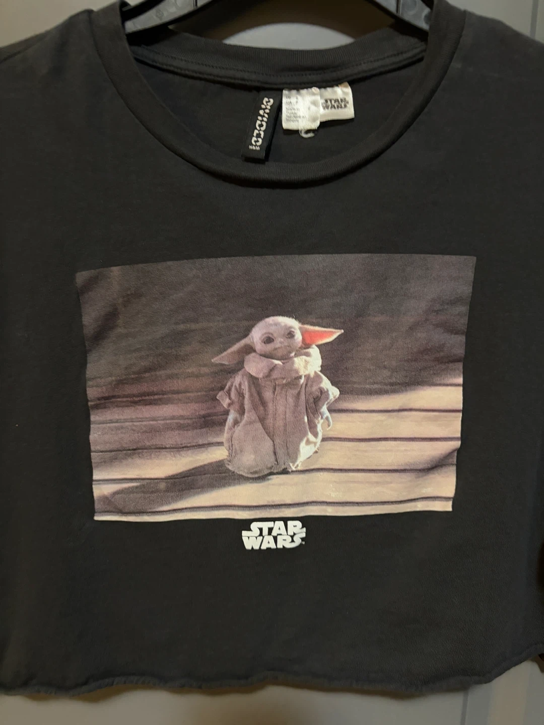 Cute H&M Divided crop top featuring Star Wars' Baby Yoda! It's a size small and in great condition. Perfect for any Star Wars fan!