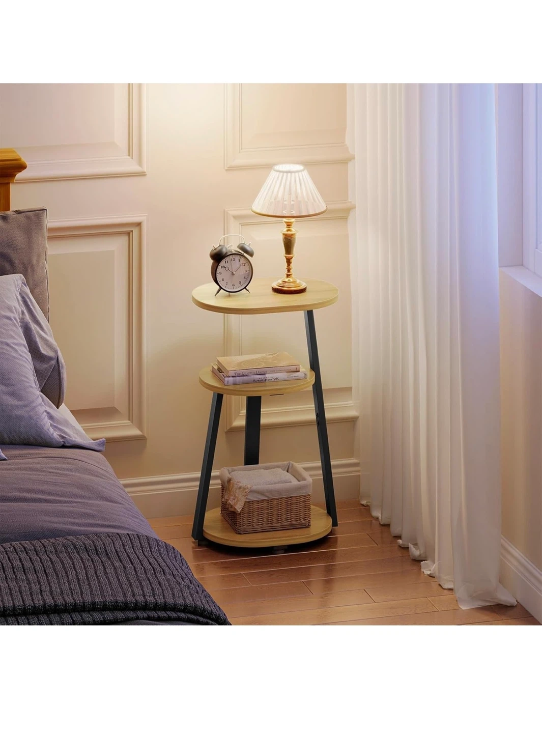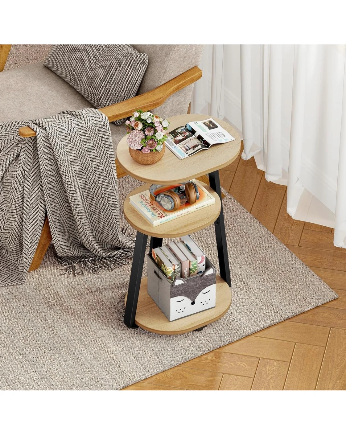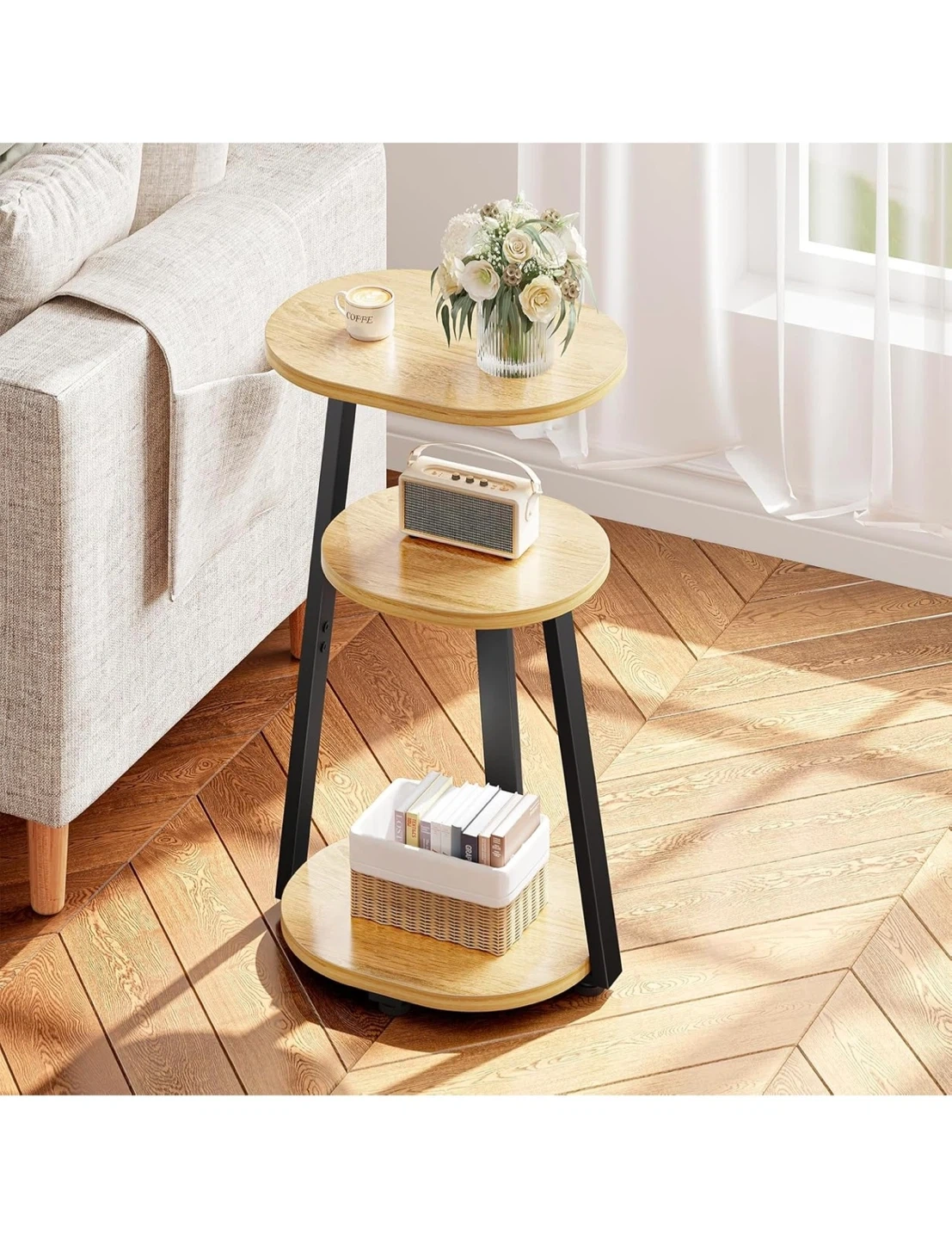 This is a cute 3-tier round end table! It's perfect as an accent table in any room. The table is 24.21" tall and each shelf can hold up to 44 lbs.