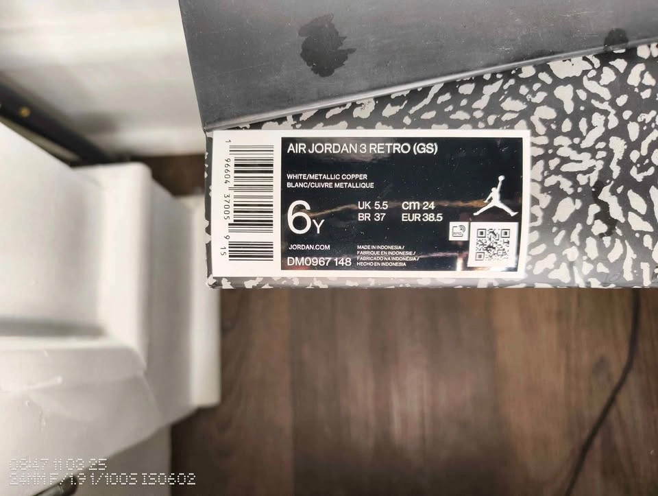 Air Jordan 3 Retro (White/Metallic Copper) - Size 6Y