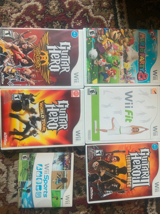 New Wii in box. Comes with Wii sports and a few other games. Have new UFC trainer, Wii balance board and the guitar. Balance board and guitar not new. UFC game new in box. Other games have been used but all in great condition. If you have any questions please ask. Thanks for looking