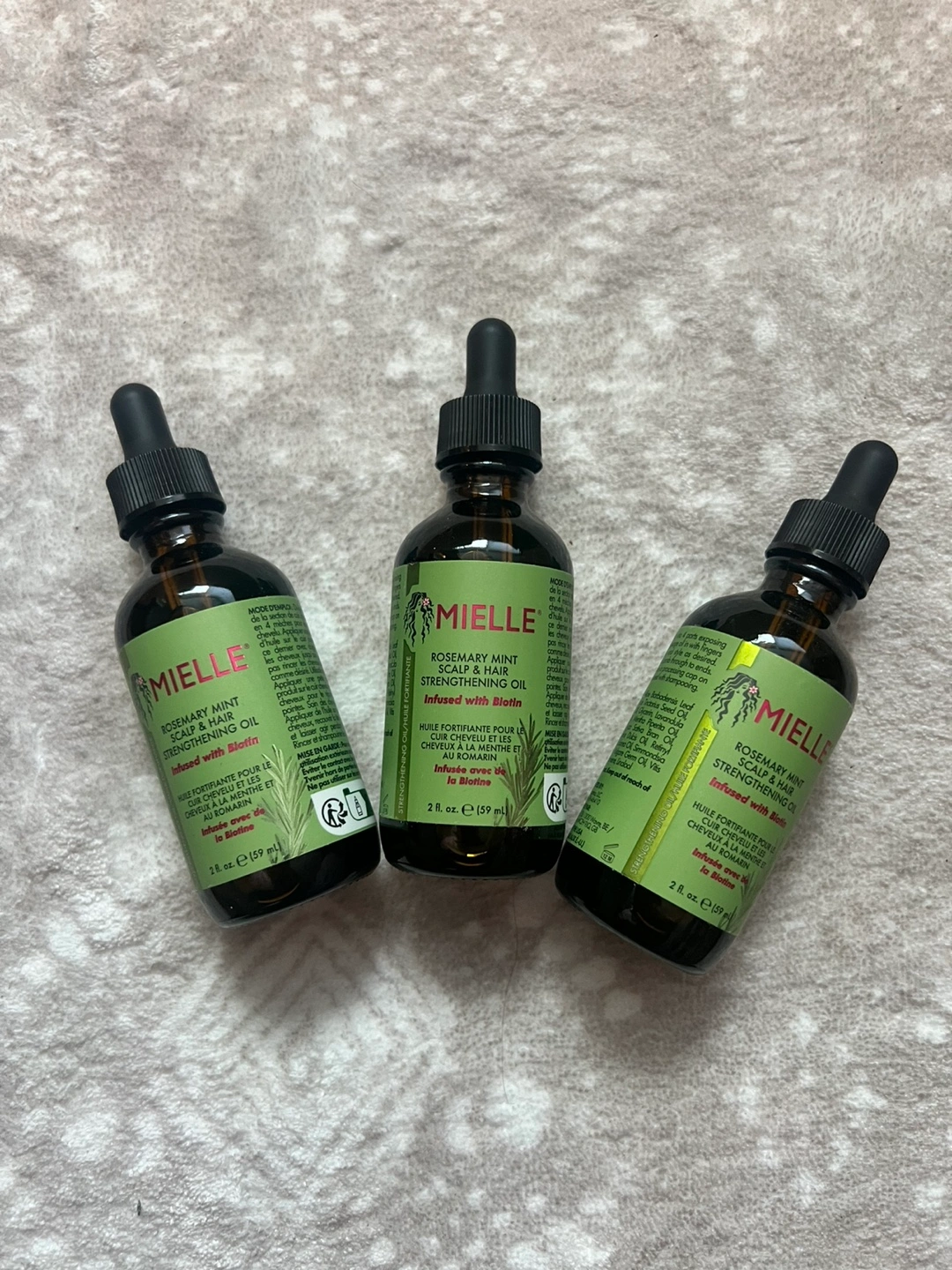 96Selling Mielle Rosemary Mint Scalp & Hair Strengthening Oil! This oil is infused with biotin and encourages growth! It's great for daily use, scalp treatment, and split end care