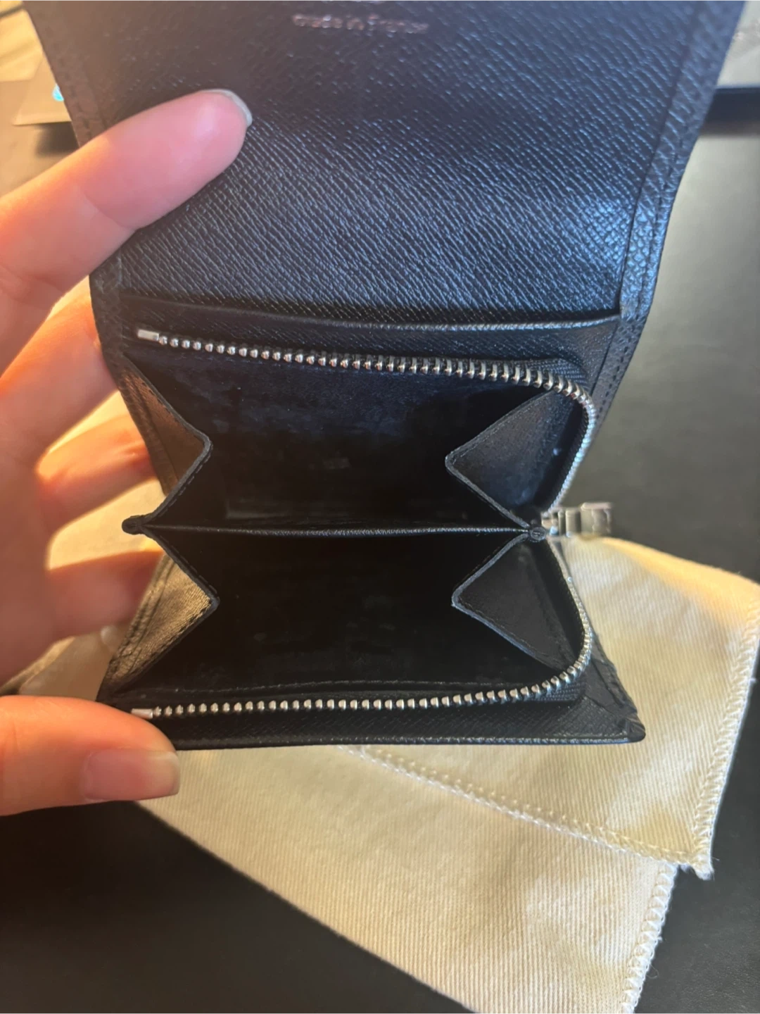 Selling a Louis Vuitton Taiga Serguei wallet in black leather. It's in great condition and comes with its original dust bag!