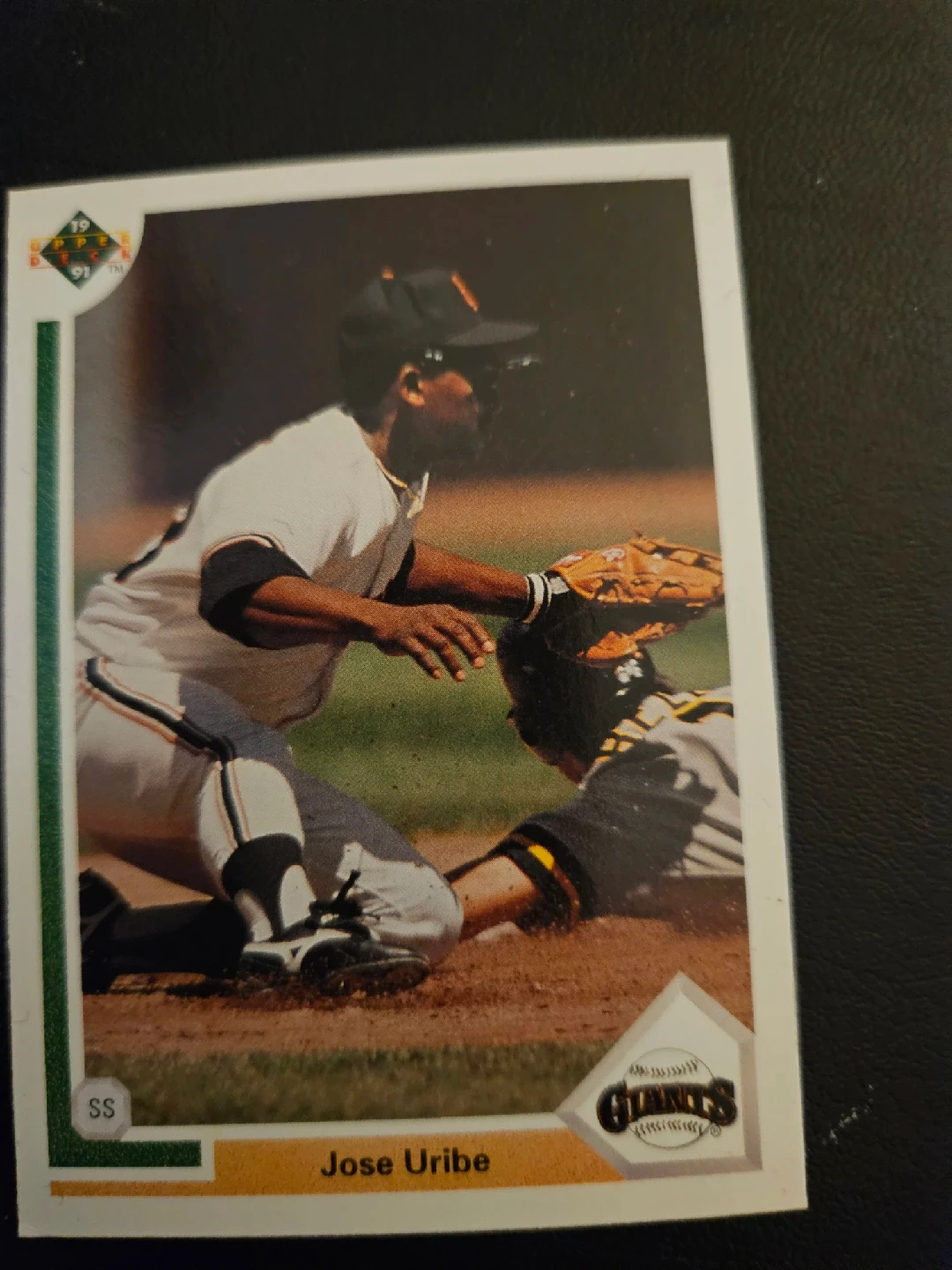 Selling a 1991 Upper Deck baseball card featuring Jose Uribe of the Giants. It's card number 207. Error card as shown in 4th picture card is worth alot more if u get graded.