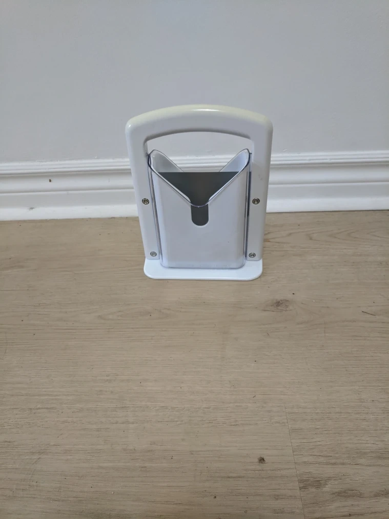 Selling a bread slicer in great condition! It's perfect for getting even slices every time. It includes a guide for easy use.