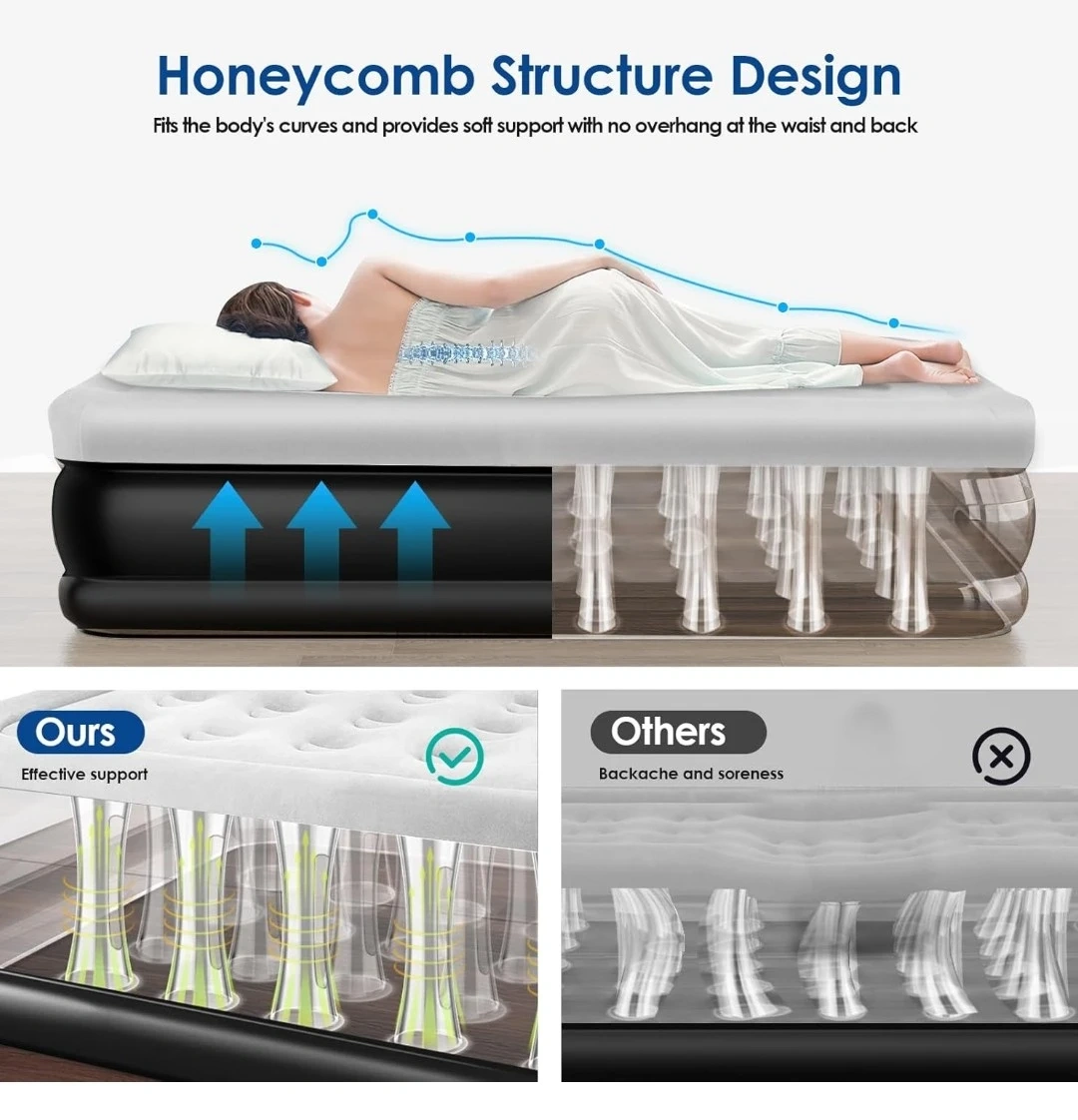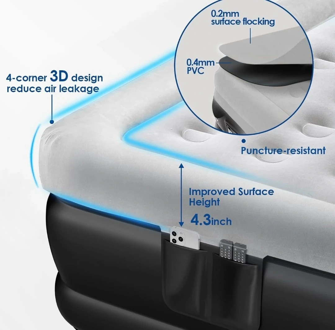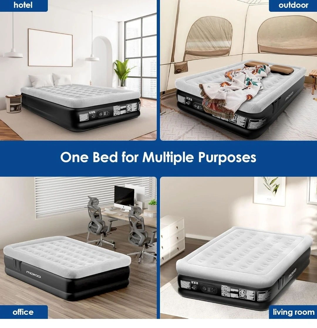 This MOKO air mattress is perfect for guests, camping, or even just a comfy night's sleep! It's queen size (80" x 60" x 18") and super easy to inflate with the built-in pump. It only takes 3 minutes! Plus, it comes with a handy carrying bag for easy storage and portability. It's lightweight and can be folded and stored after deflating