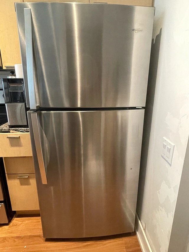 This is a used Whirlpool refrigerator, ready to keep your groceries cool and your kitchen complete. While it's been pre-loved, it still has lots of life left to offer! Specifications: - Brand: Whirlpool - Finish: Stainless Steel - Type: Top Freezer Refrigerator - Condition: Used - Size: 30”W x 65.25”H x 32.5”D (34.5” deep with handles) Pickup Yonge & Sheppard