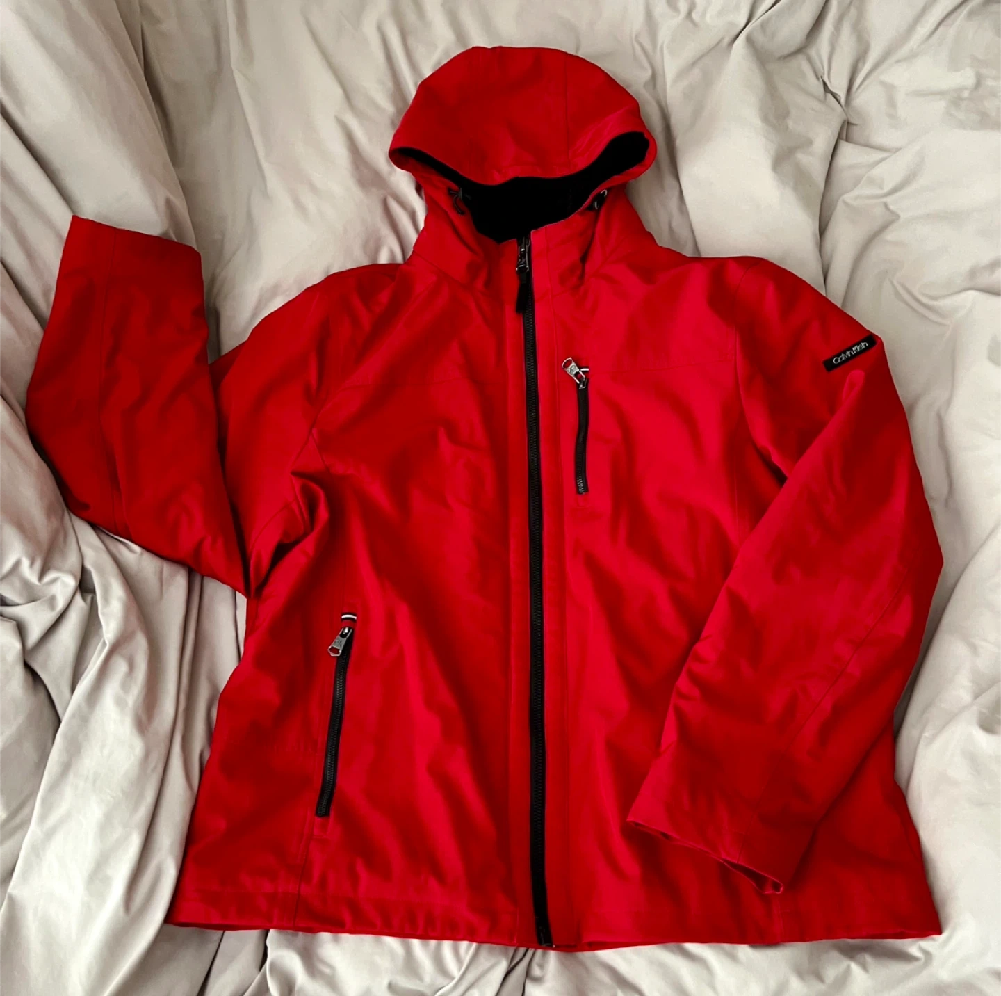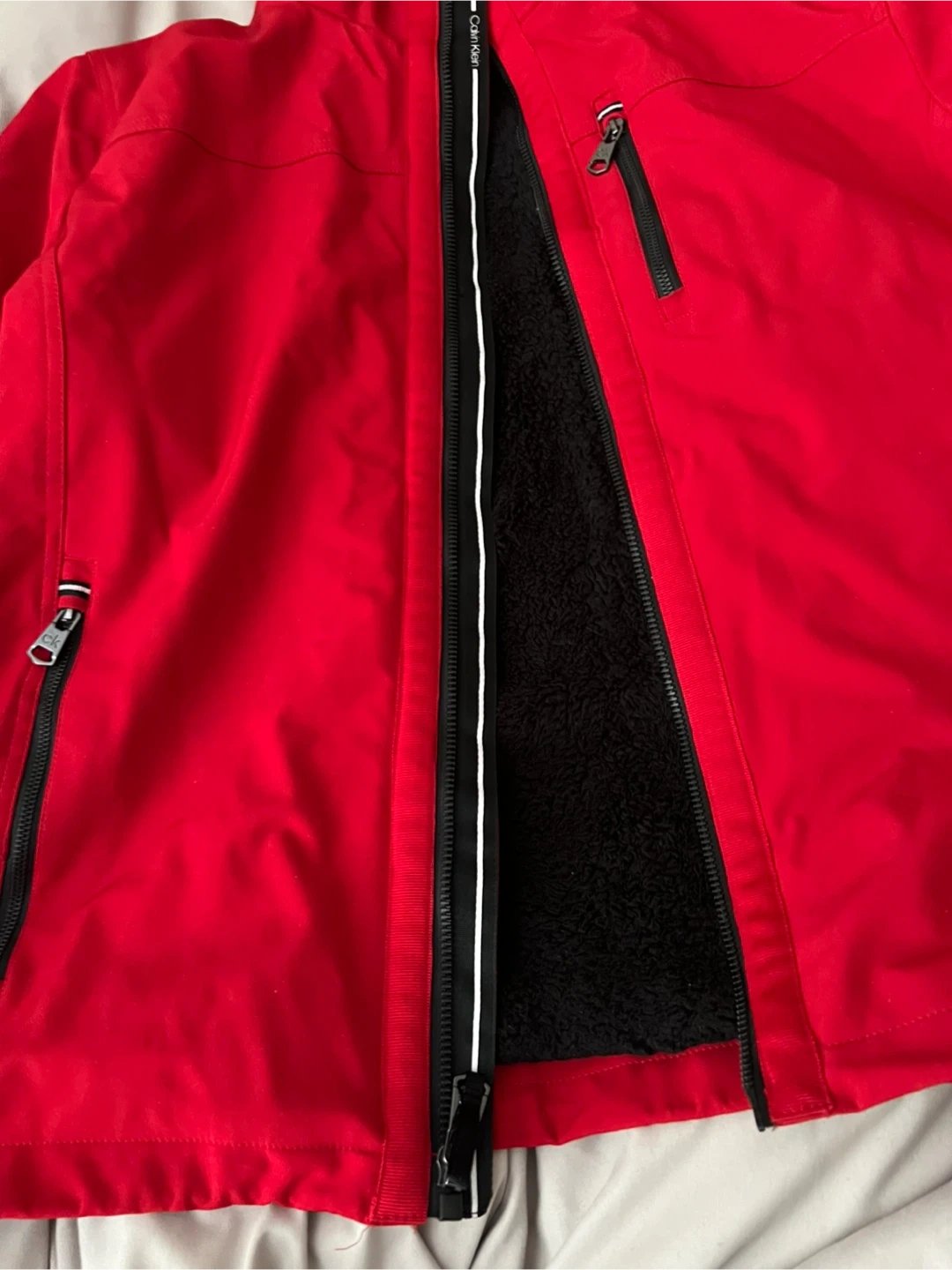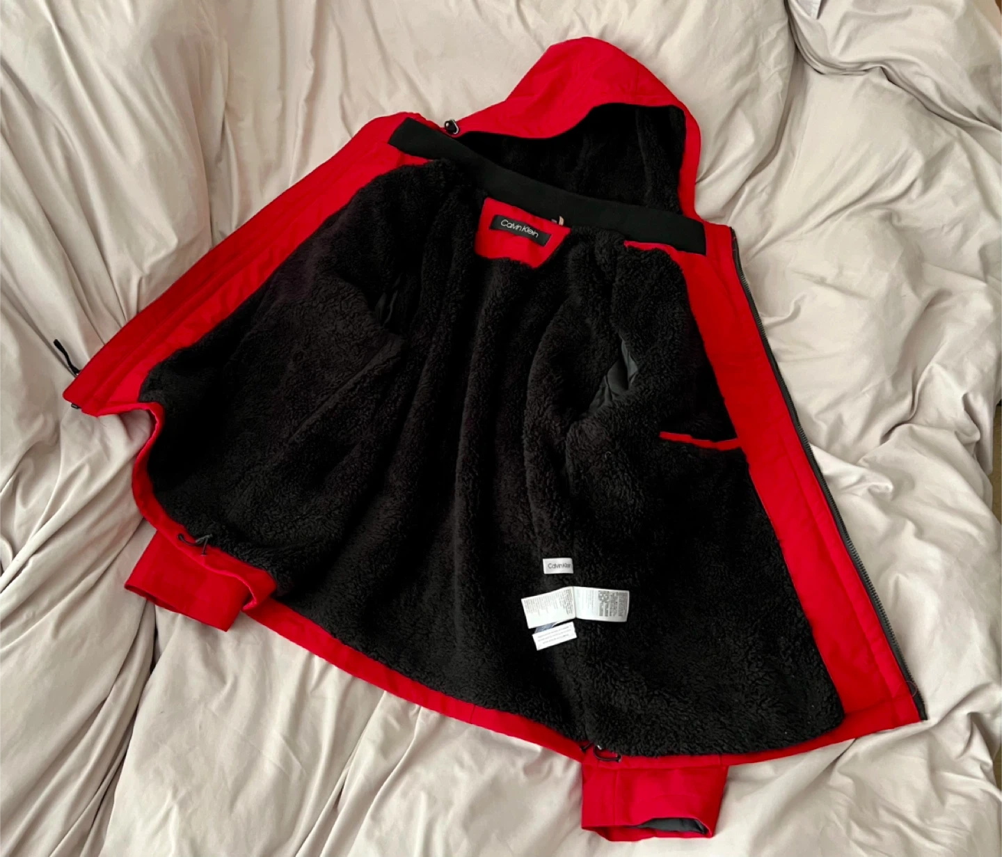 It features a cozy black lining and a hood for extra warmth on those chilly days.