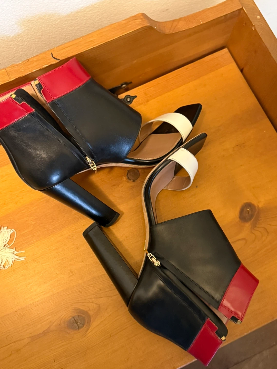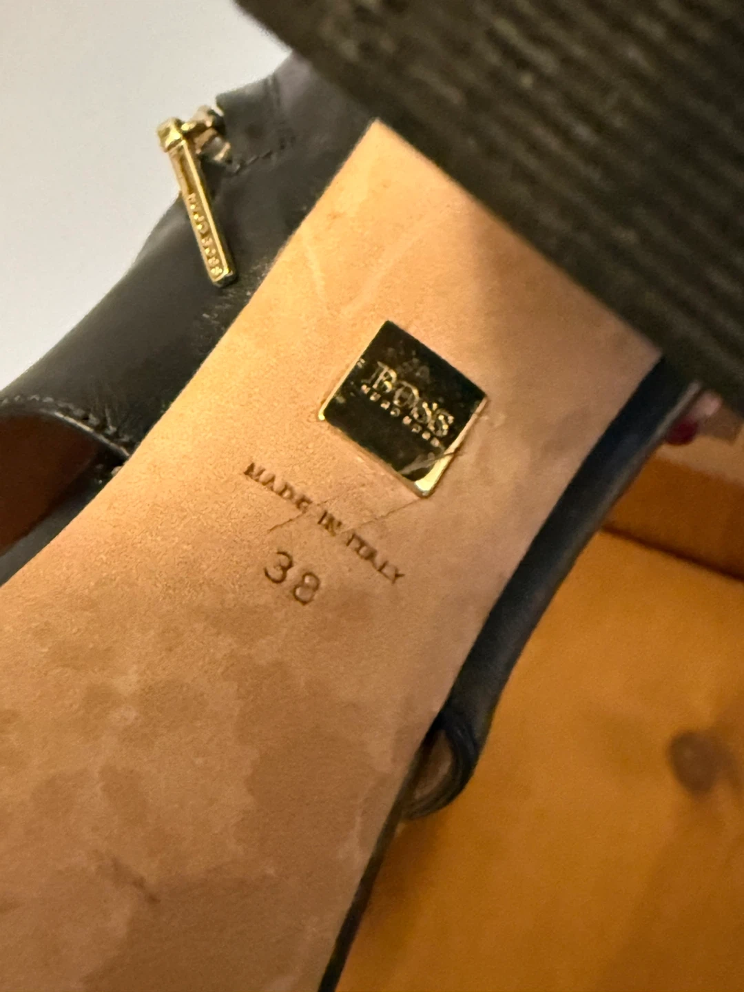 Stylish BOSS heels in a striking black and red colour combination! These heels are a European size 38 and feature a unique design. Made in Italy, these heels are sure to make a statement!