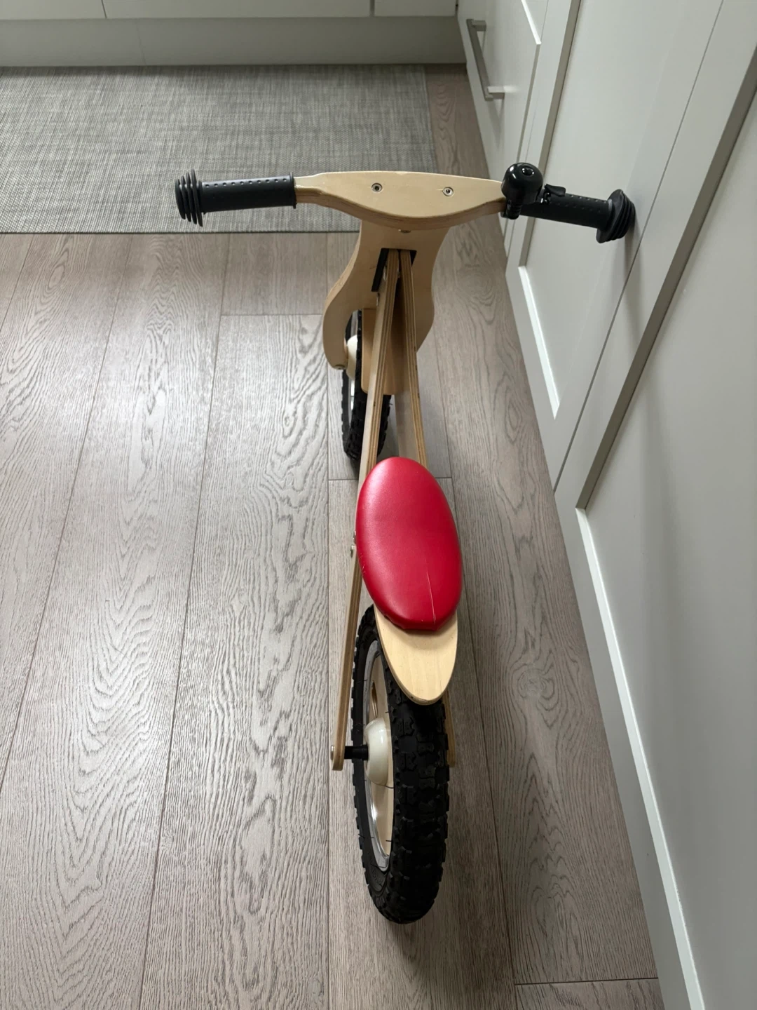 Selling a Runners balance bike in excellent condition! It's a great way for kids to learn balance and coordination before transitioning to a pedal bike. The bike features a lightweight wooden frame and adjustable seat height, making it perfect for growing children. It's been gently used and is ready for a new home! Looks Brand New