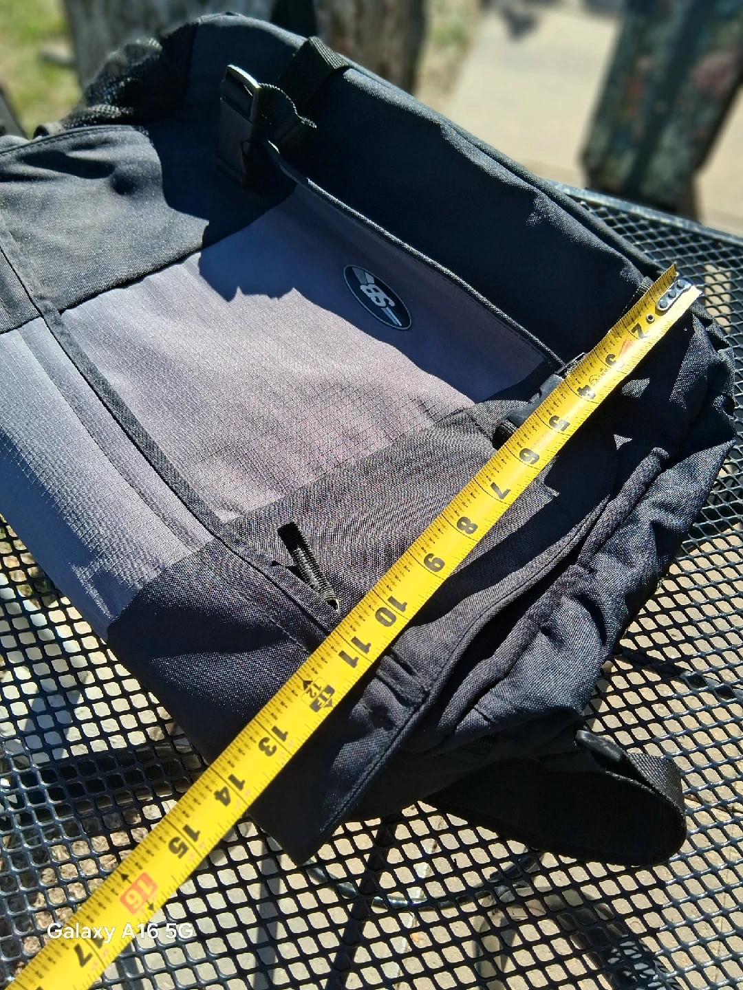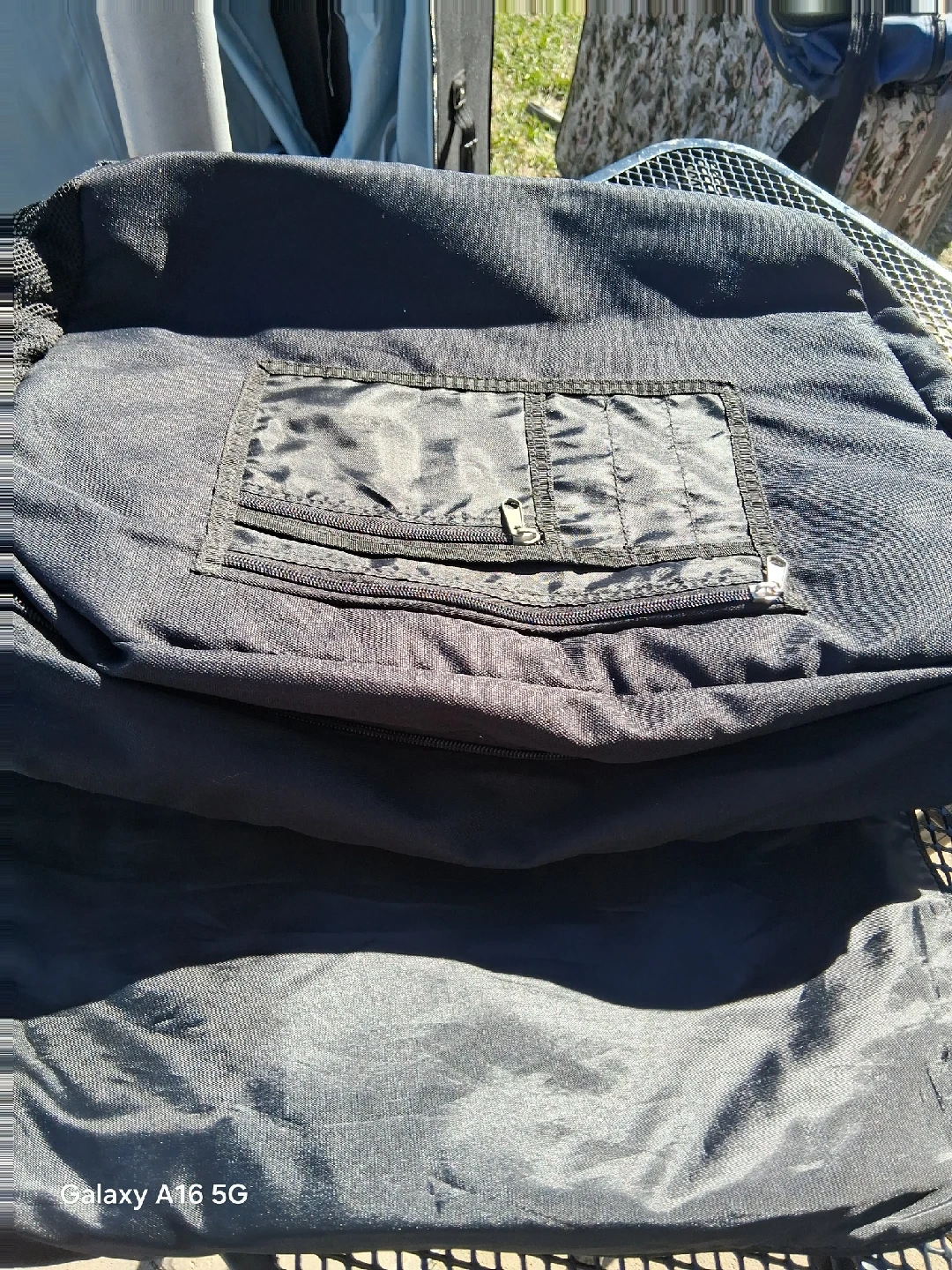 I'm selling a messenger bag in black and gray. It has a front pocket with zipper closures and an adjustable shoulder strap. It measures approximately 22 inches in length.