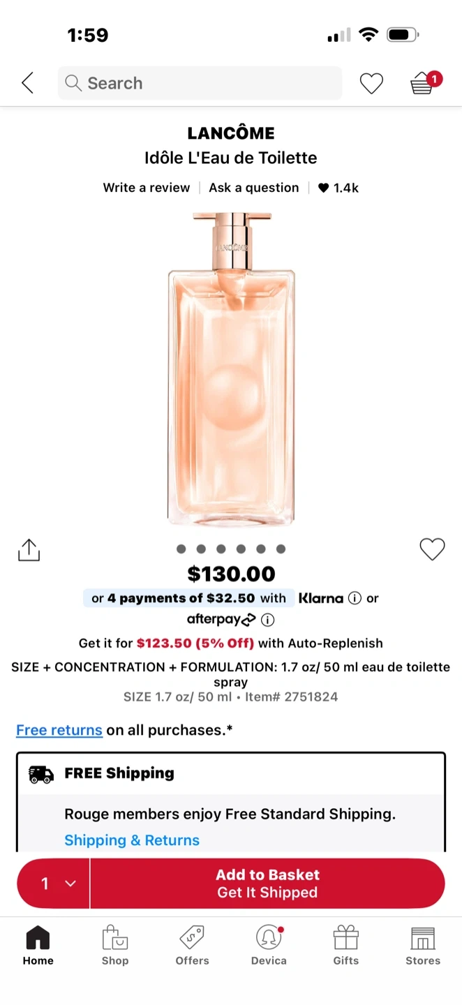 Selling a bottle of Lancôme Idôle L'Eau de Toilette. This is a 50ml bottle, and it comes in its original box. Size is 1.7 oz / 50 ml. Box is sealed.