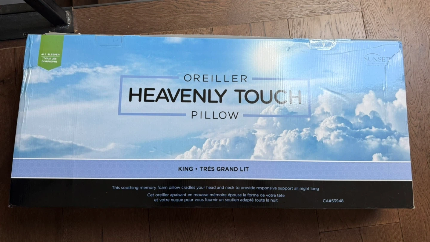 Selling a brand new Heavenly Touch pillow in King size! This soothing memory foam pillow cradles your head and neck to provide responsive support all night long. The box is included