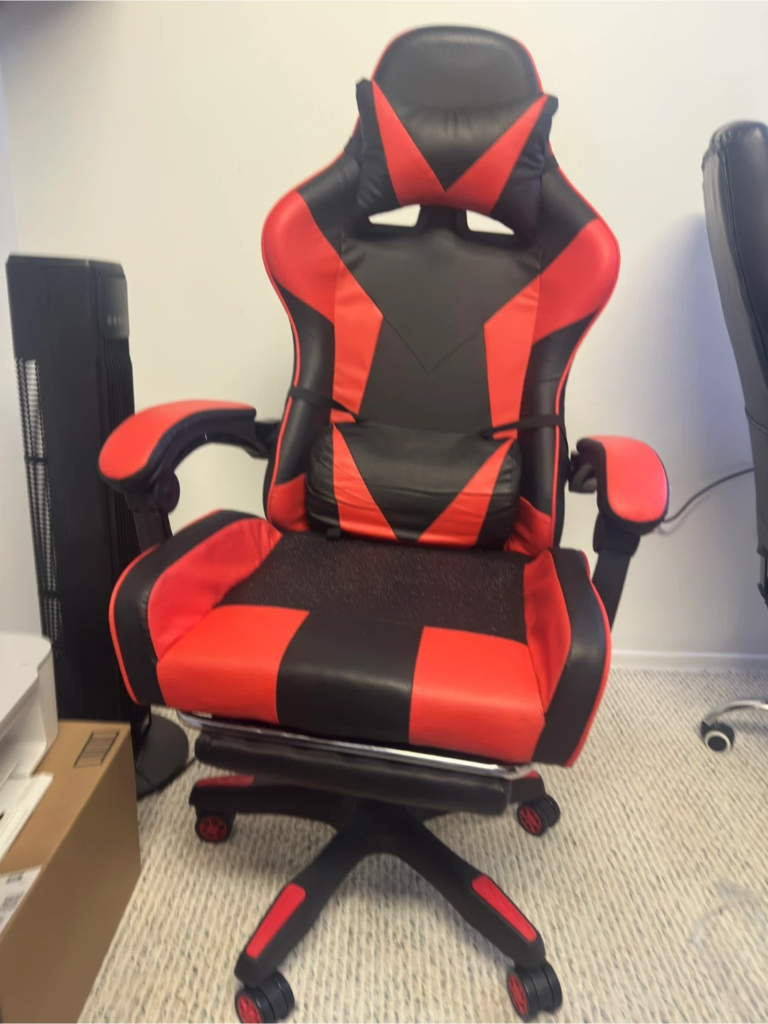 Selling a black and red Officestar gaming chair in great condition! It's super comfy and perfect for long gaming sessions or working from home.