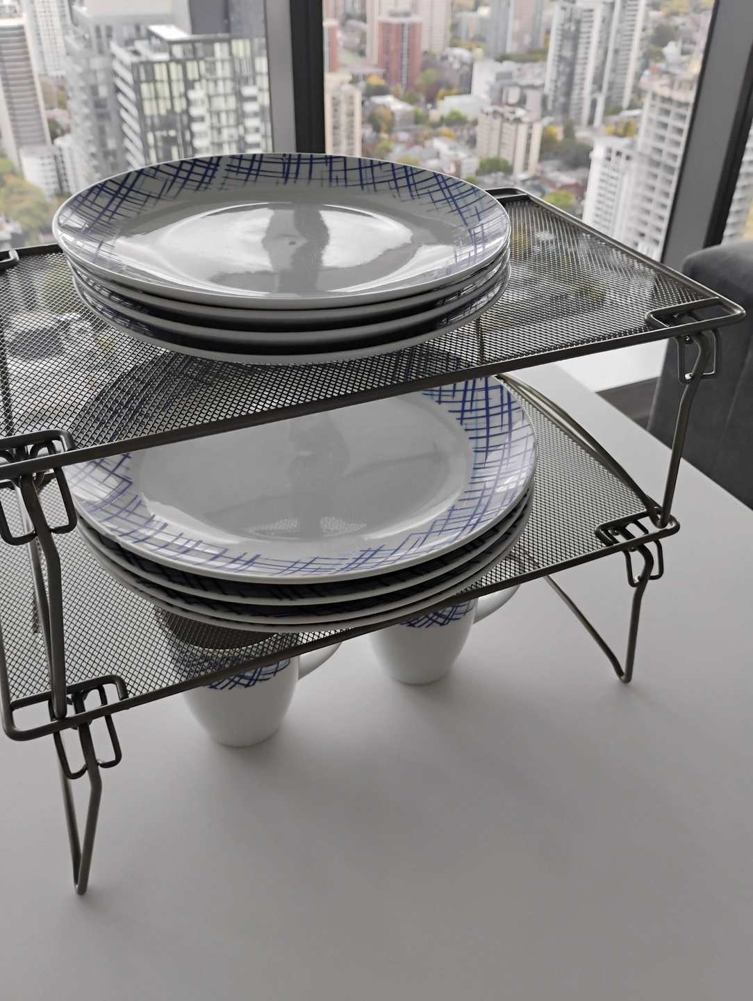 Maximize the storage capacity of your cupboard with these stacking inserts. The inserts also fold up for easy storage.