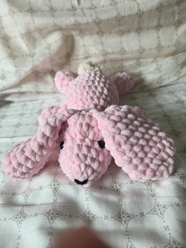 A cute, handmade pink crochet stuffed bunny! It's brand new, well-made, and ready for a new home. Perfect for a baby or child's room, or as a cuddly companion for anyone who needs a cute friend to hug.