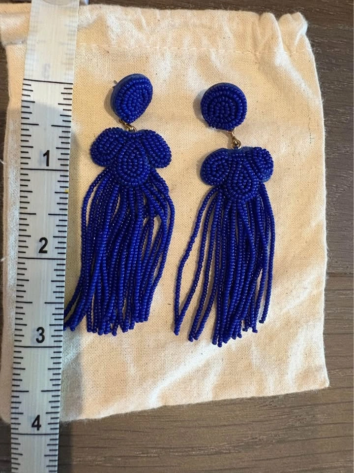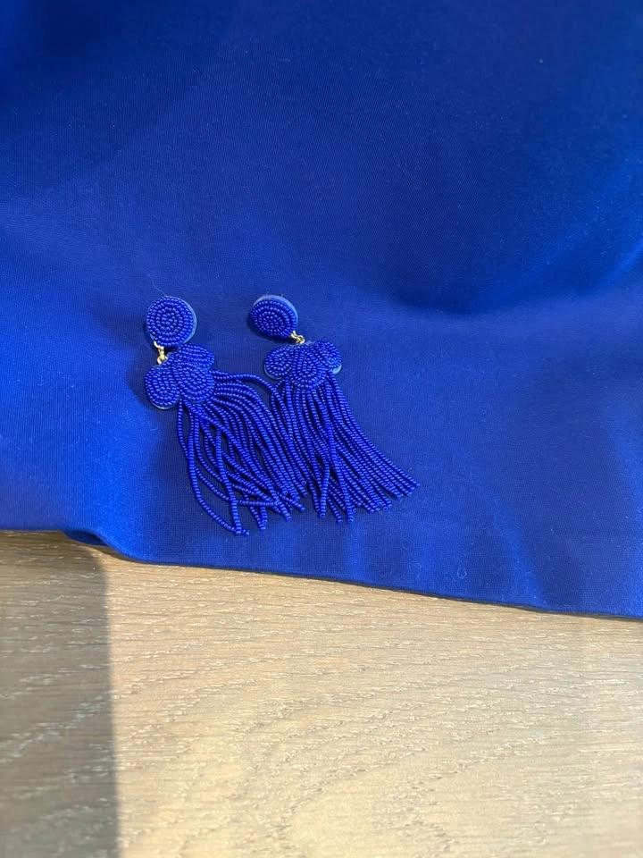 Armani Exchange fitted mini dress, size S. Beautiful royal blue/cobalt tone. Side zipper and decorative zigzag seams. Used only once. Matching beaded earrings from JCrew. Price is for both items. Local pick up near morningside campus.