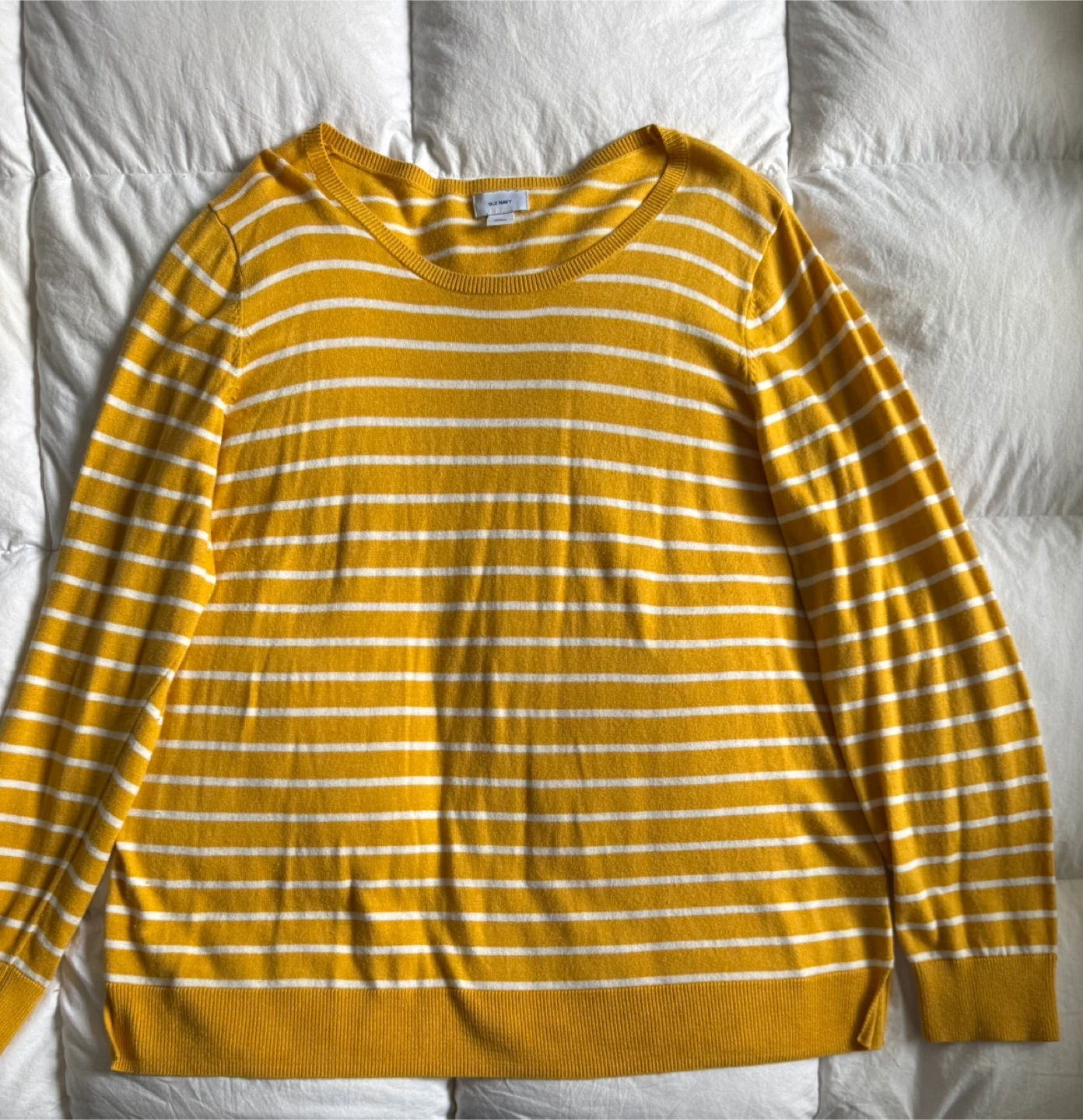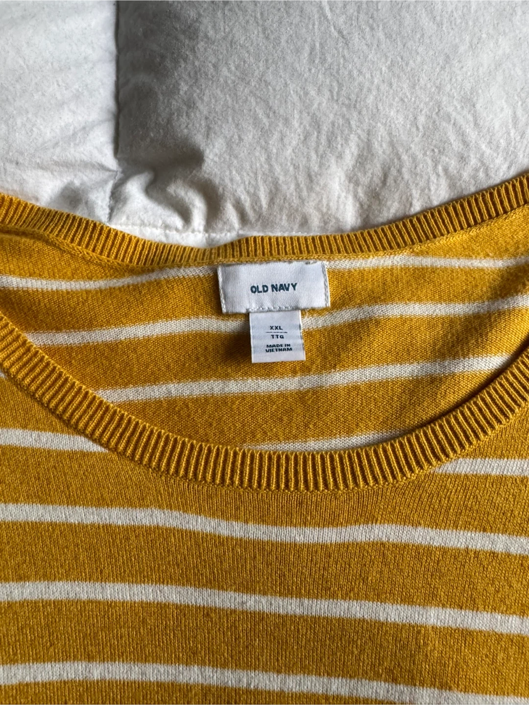 Two Old Navy sweaters for sale! One is a yellow and white striped sweater, and the other is a navy blue sweater with white polka dots. Both are size XXL. Best price $10 each price is firm. Pickup Surrey
