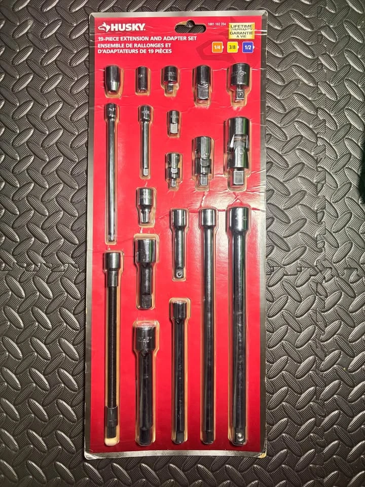 (4) drive adapters (1/4F to 3/8M, 3/8F to 1/4M, 3/8F to 1/2M, and 1/2F to 3/8M)