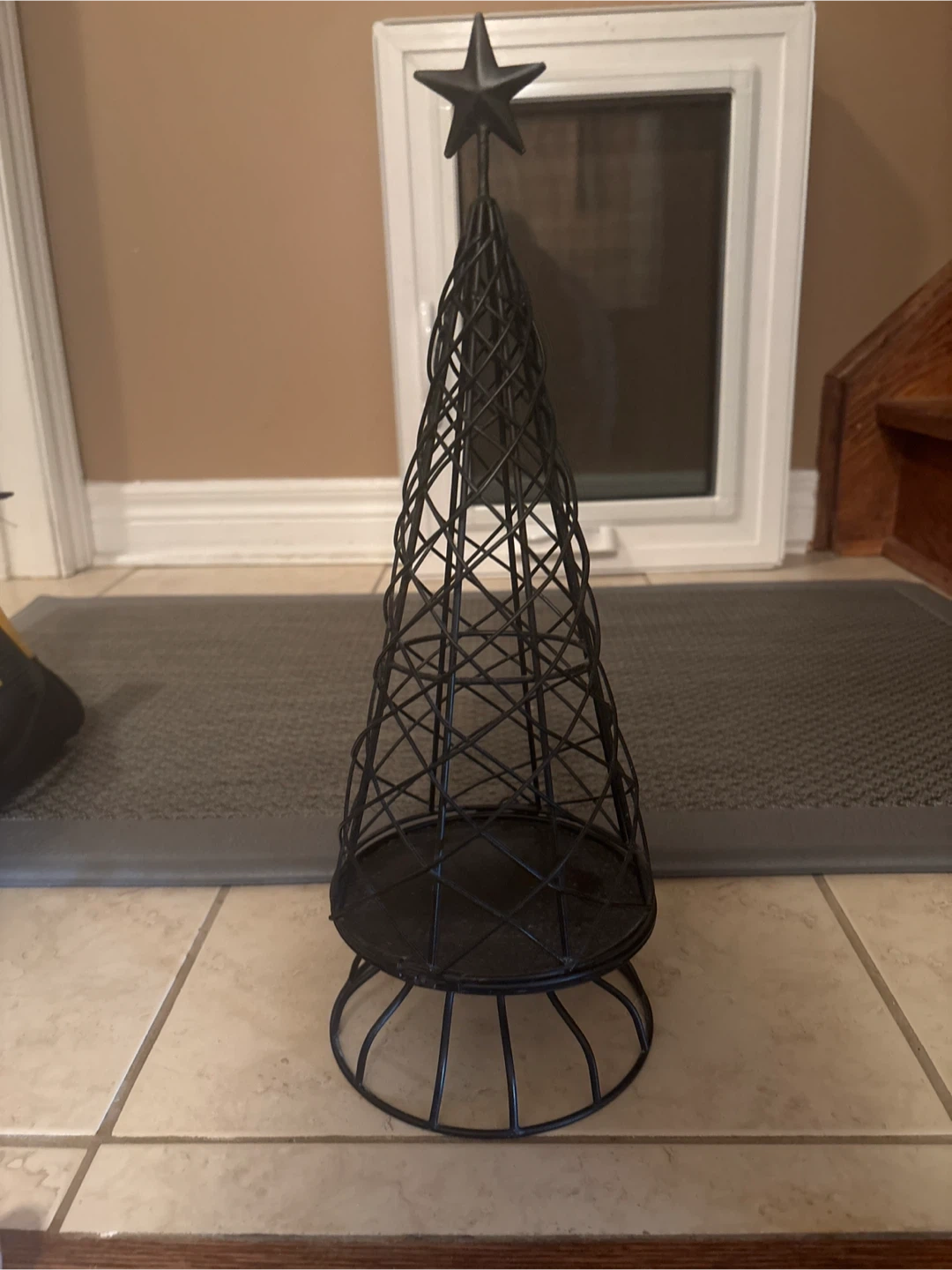 49Selling a metal Christmas tree with a star on top. It's a unique decorative piece that would look great during the holidays!
