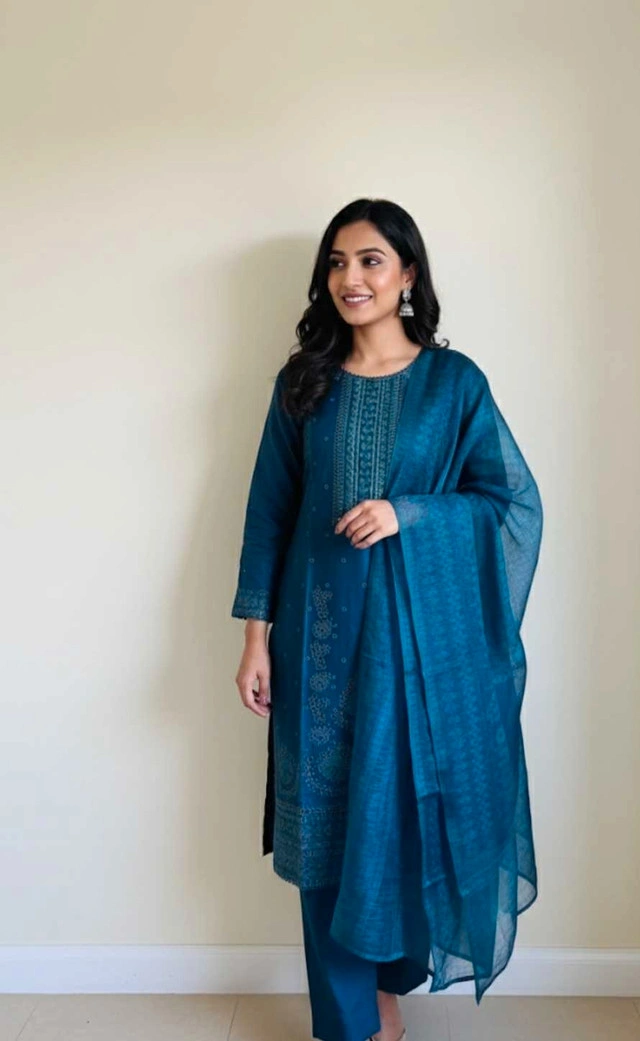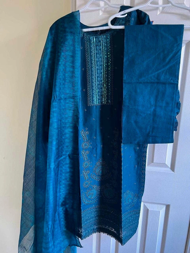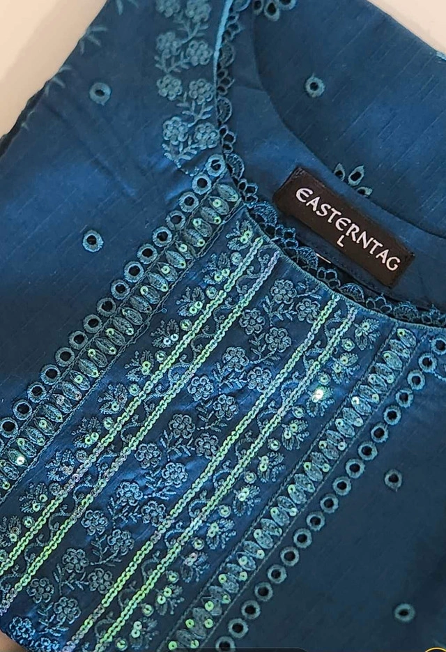 Beautiful 3 pcs Chikenkari embroidered suit. Plain trousers.