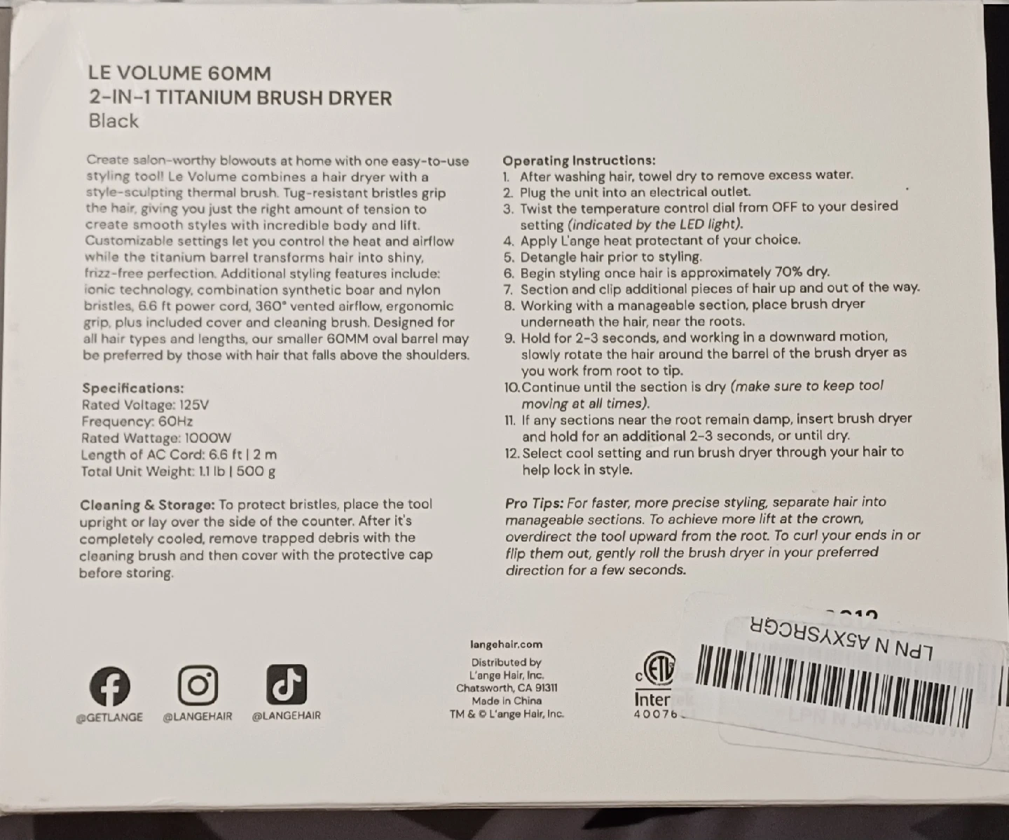 28Selling a L'ange 2-in-1 titanium brush dryer black/60mm hot air blow dryer brush with oval barrel. This is perfect for creating salon-worthy blowouts at home!