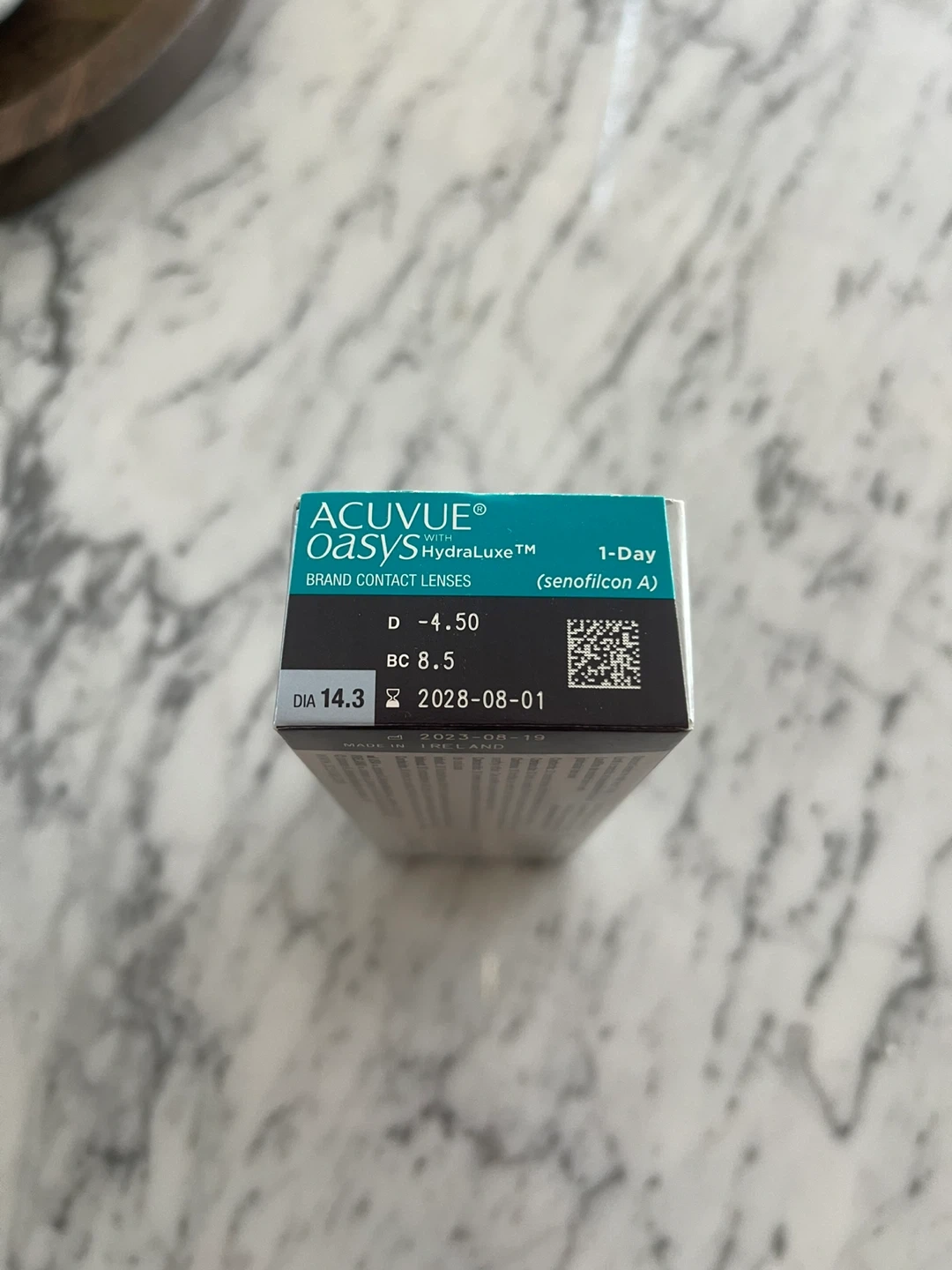Selling a box of Acuvue Oasys HydraLuxe 1-Day contact lenses. They are brand new and unopened.