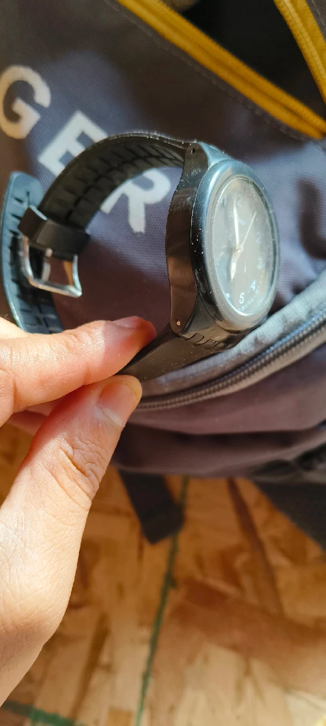 Selling a black Swatch watch in used condition. It has some scratches on the face, but it still works perfectly fine. The band is also in good condition.