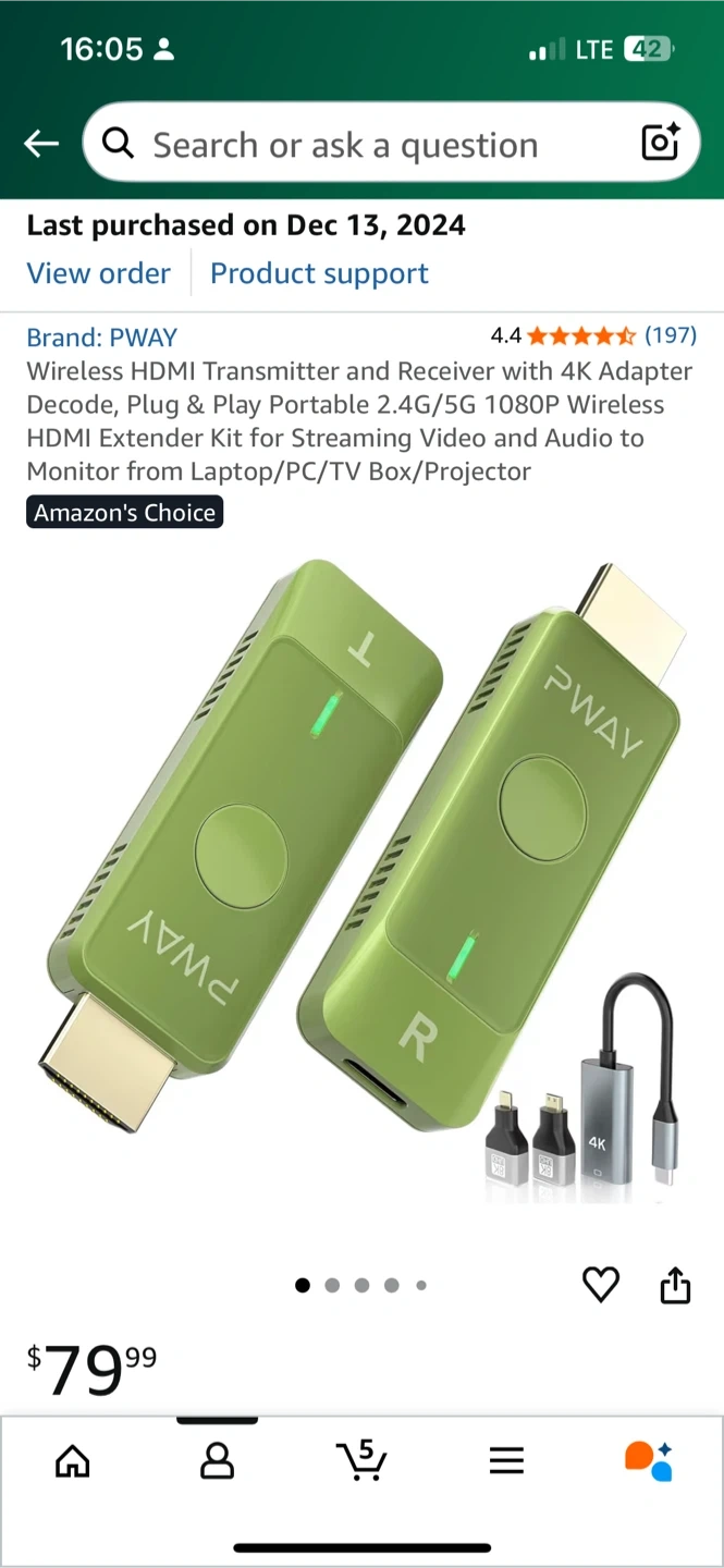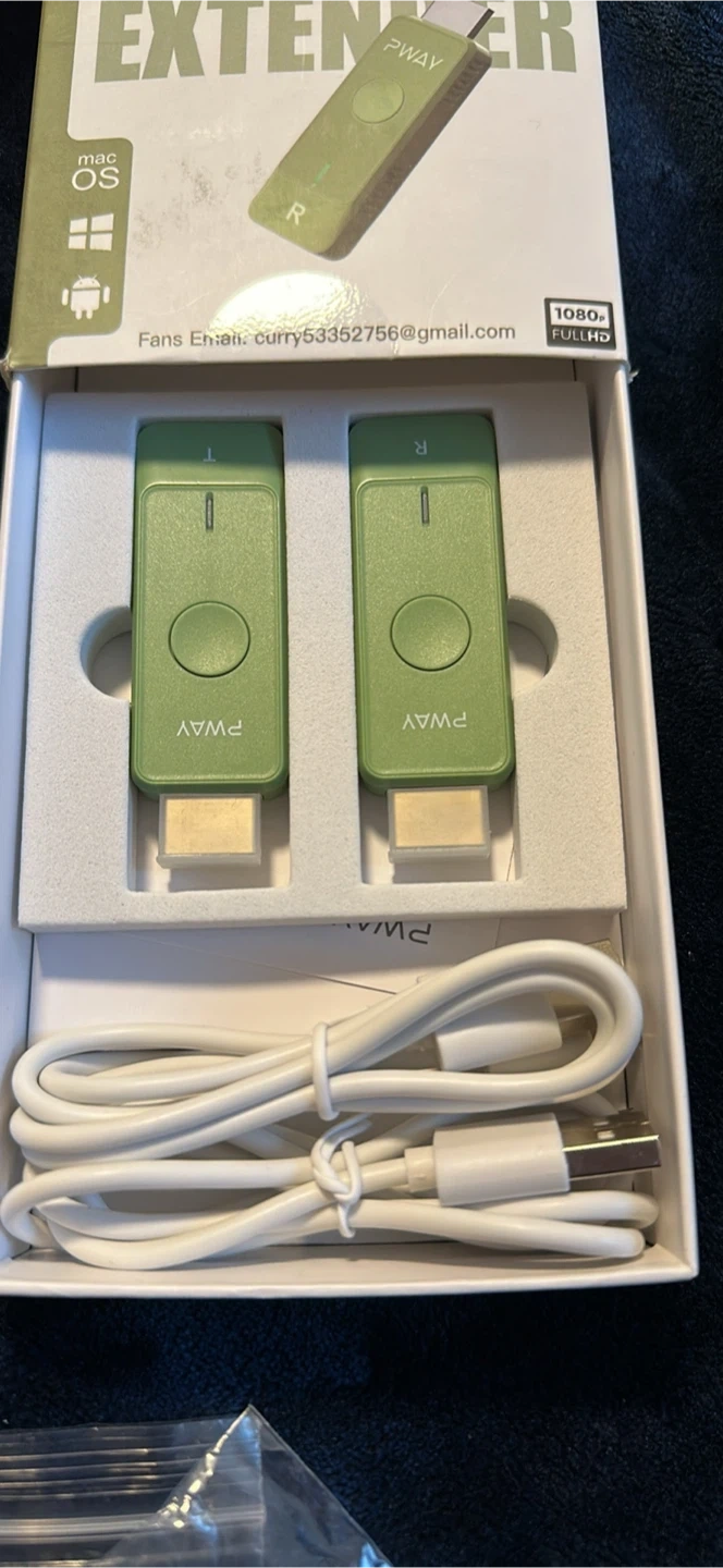 Selling a brand new PWAY Wireless HDMI Extender Kit! It comes with the box and all original components, including the charging cable. This kit allows you to stream video and audio from your laptop, PC, TV box, or projector. It supports 1080P Full HD resolution and uses 2.4G/5G wireless technology. Originally bought for $79.99!