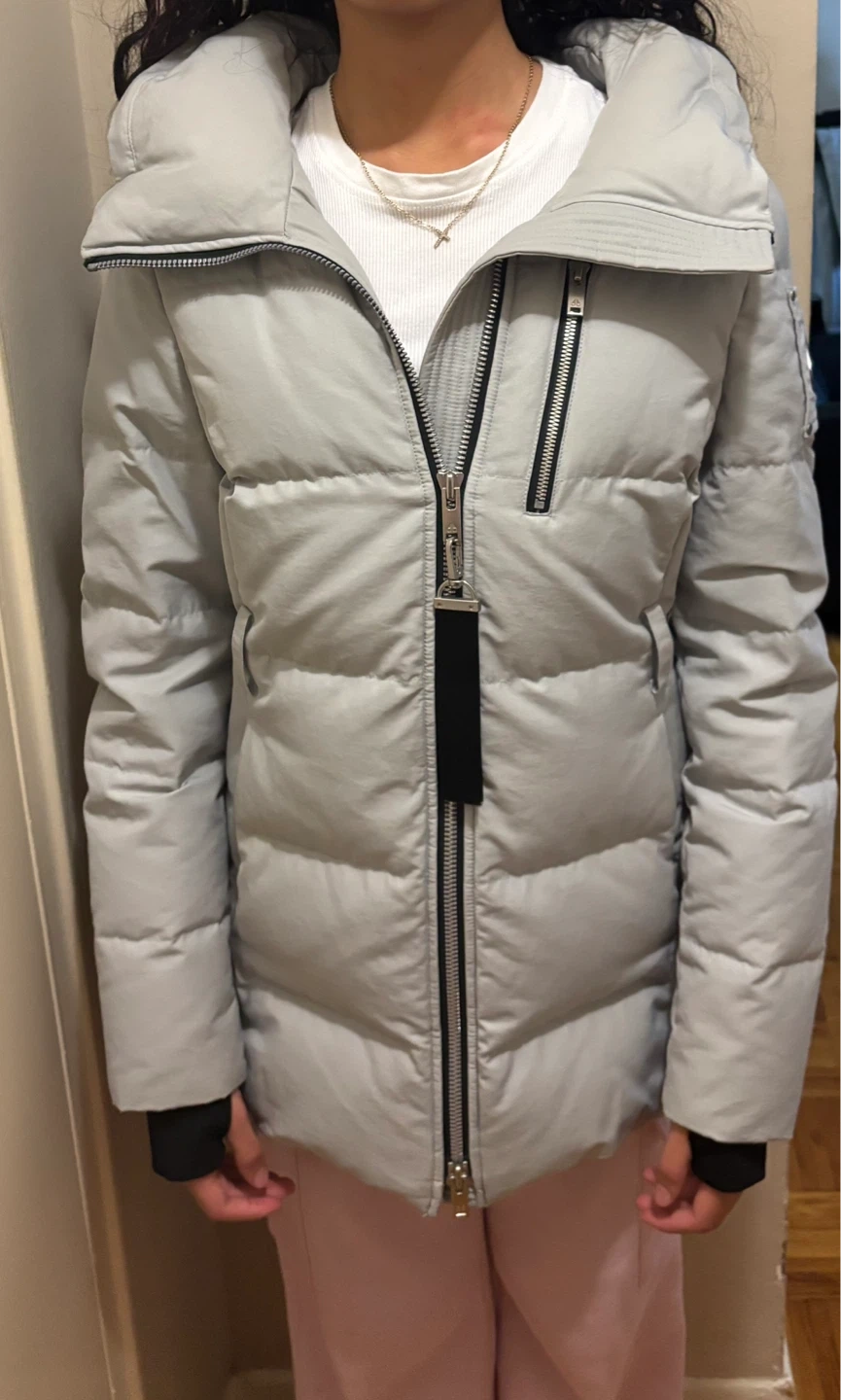 Selling a Moose Knuckles down puffer jacket in size women’s small. Colour is light blue. It's in great condition and super warm for the Canadian winter!