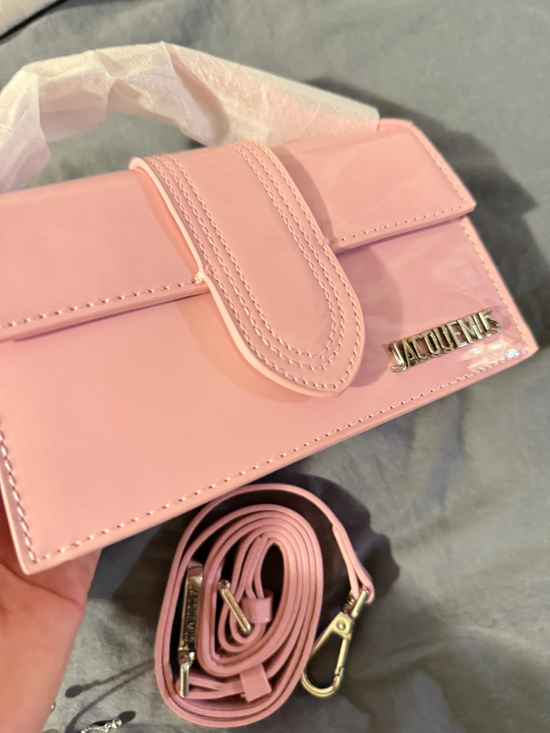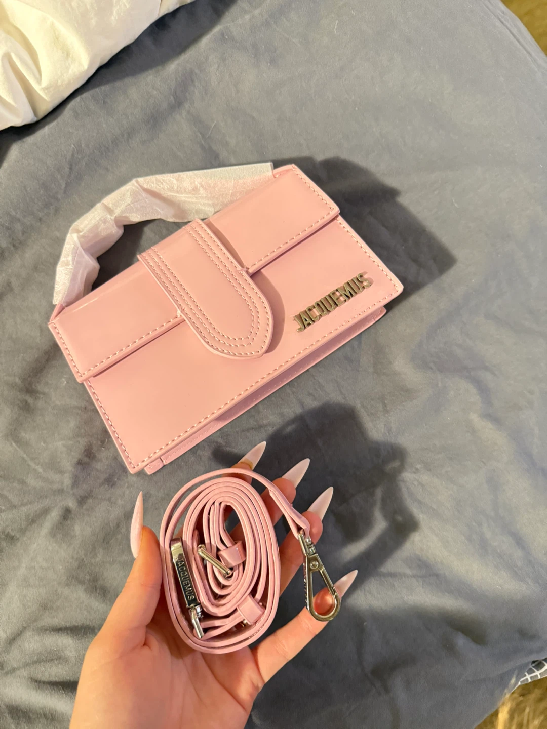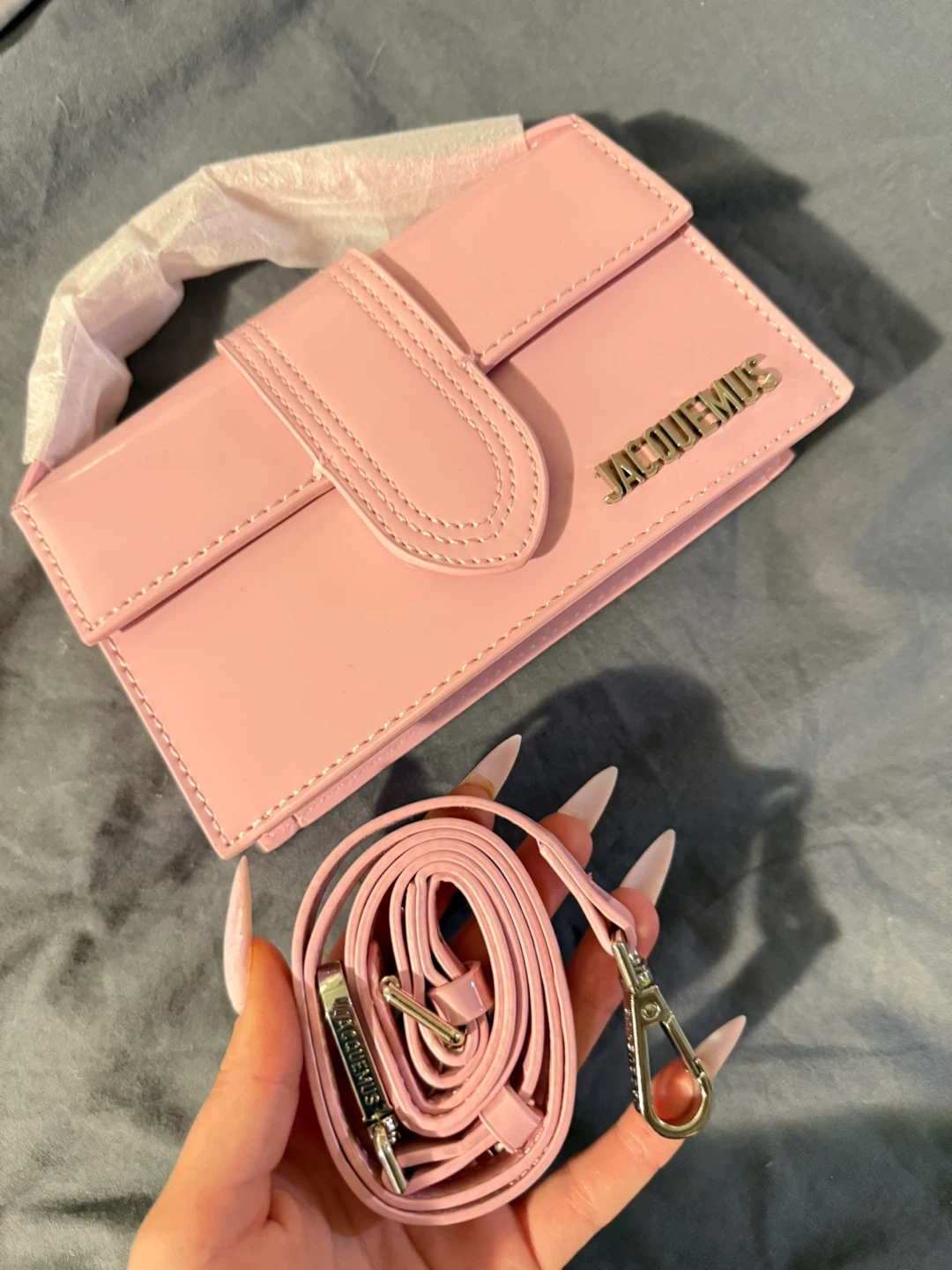 Here's a super cute Jacquemus Le Bambino shoulder bag in pink! It's in great condition and comes with its original strap
