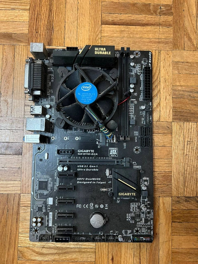 * Asrock H110 Pro BTC+ Mining Motherboard with CPU, RAM & mining Frame. With box. Works fine. $60 * Gigabyte GA-H110-D3A with CPU (Not sure if Celeron or i3) & Cooler. $40 * Intel Pentium G440T 2.9GHz with CPU Cooler. $10 * Arctic 120mm case fans. Model: ARCTIC P12 PWM PST. 5 Pack x2. $35 for all 10. * UpHere 120mm Case fans. 6 available. $20 for all 6. * Ryzen 5 3600x Wrath Prism stock CPU cooler with CPU box. Unused. $10 Feel free to make an offer for multiple items. Available if this ad is up. No need to ask if still available.