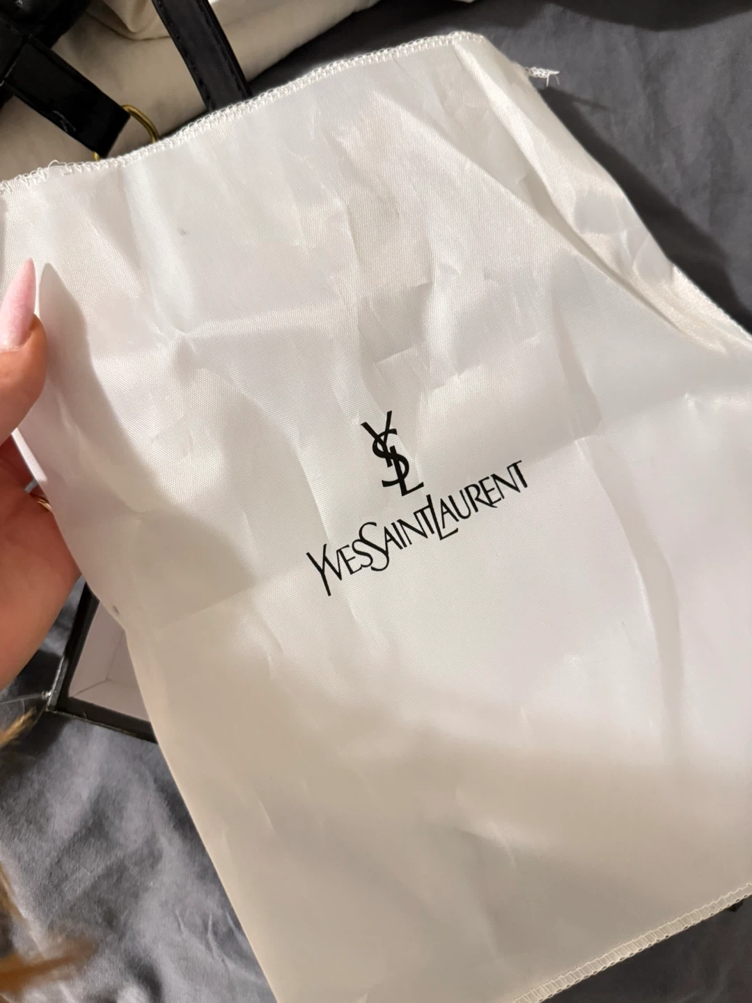 Selling a stylish Saint Laurent handbag in black quilted leather! It comes with a chain strap and the original box, making it a perfect addition to your collection. The bag features the iconic YSL logo, adding a touch of luxury to any outfit