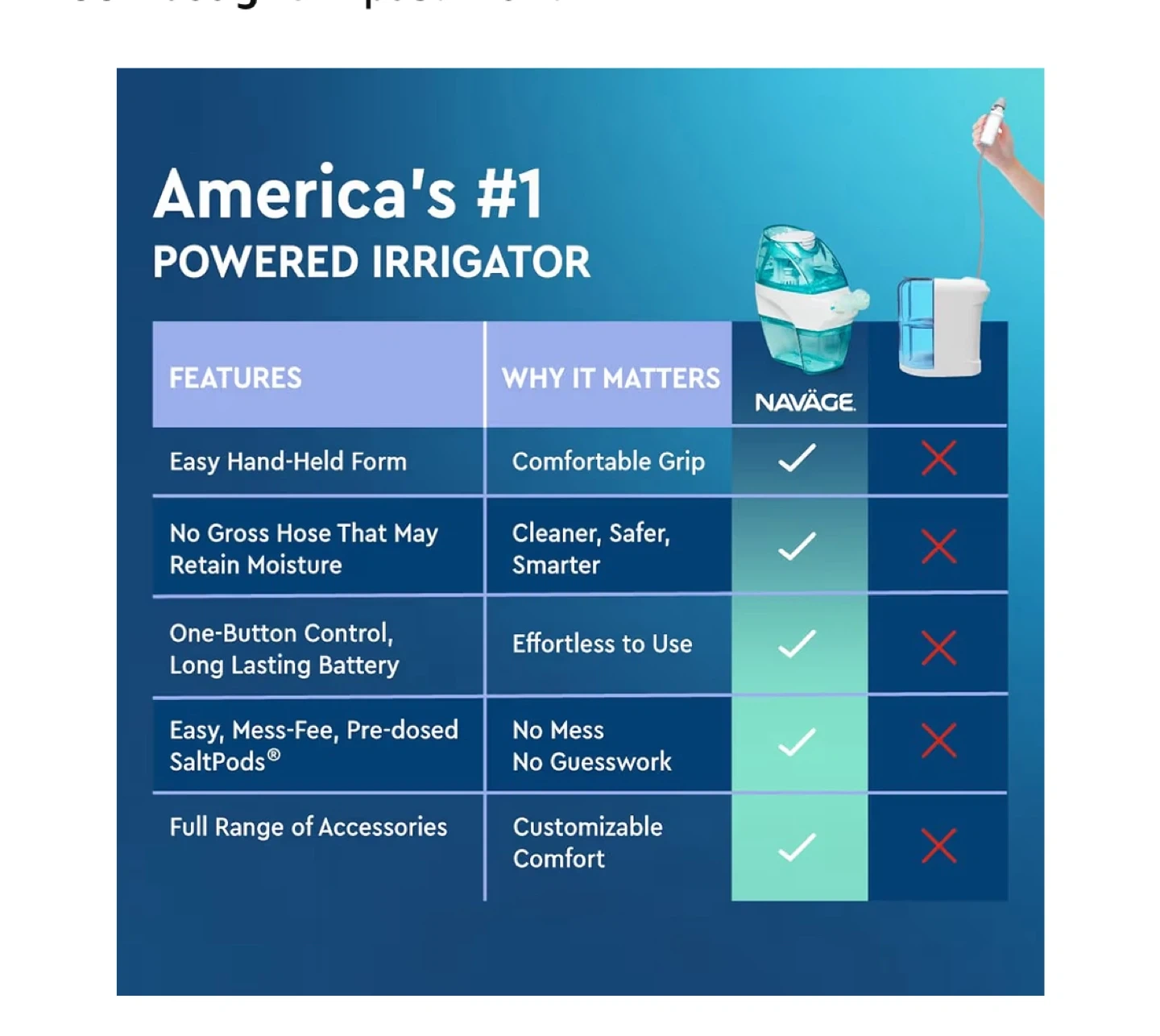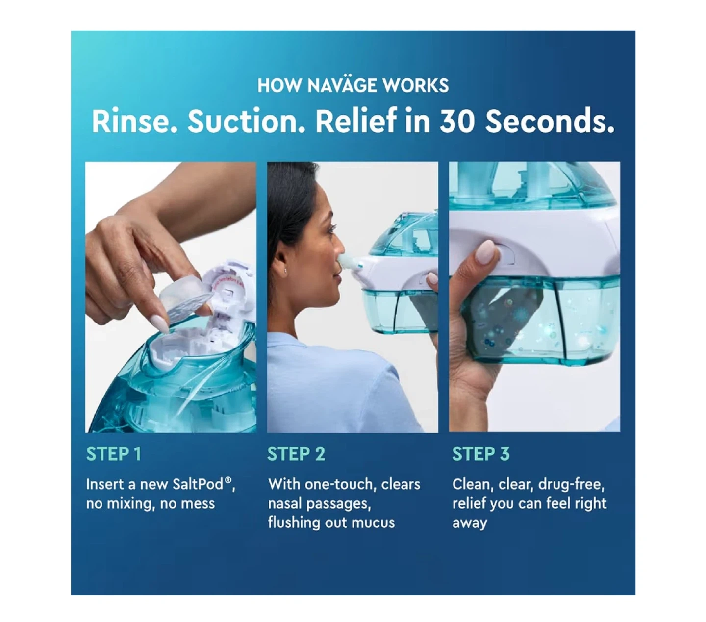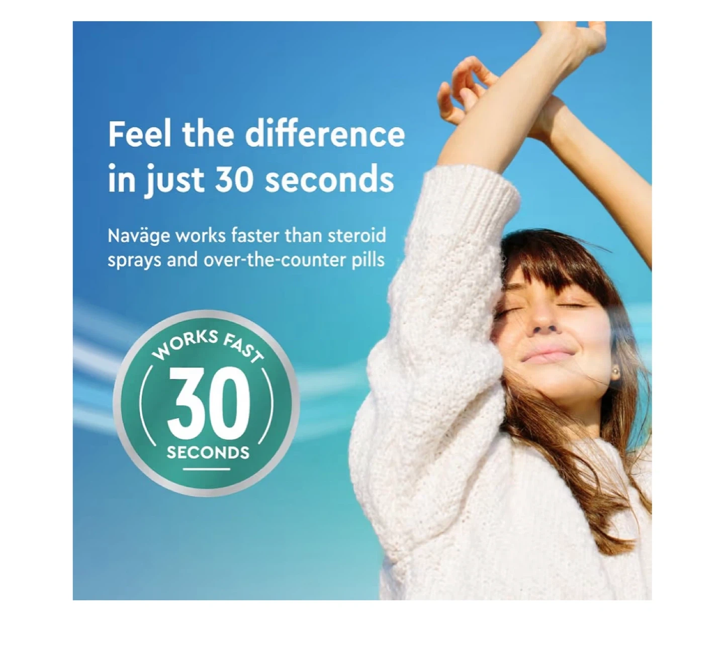 5I'm selling a Naväge Nasal Congestion Relief System. It works faster than steroid sprays and over-the-counter pills, providing relief in just 30 seconds. It features an easy hand-held form with a comfortable grip, one-button control, and pre-dosed SaltPod capsules for no mess and no guesswork. Plus, it comes with a full range of accessories for customizable comfort. Naväge gets the gunk out, offering a drug-free solution with no medicinal side effects