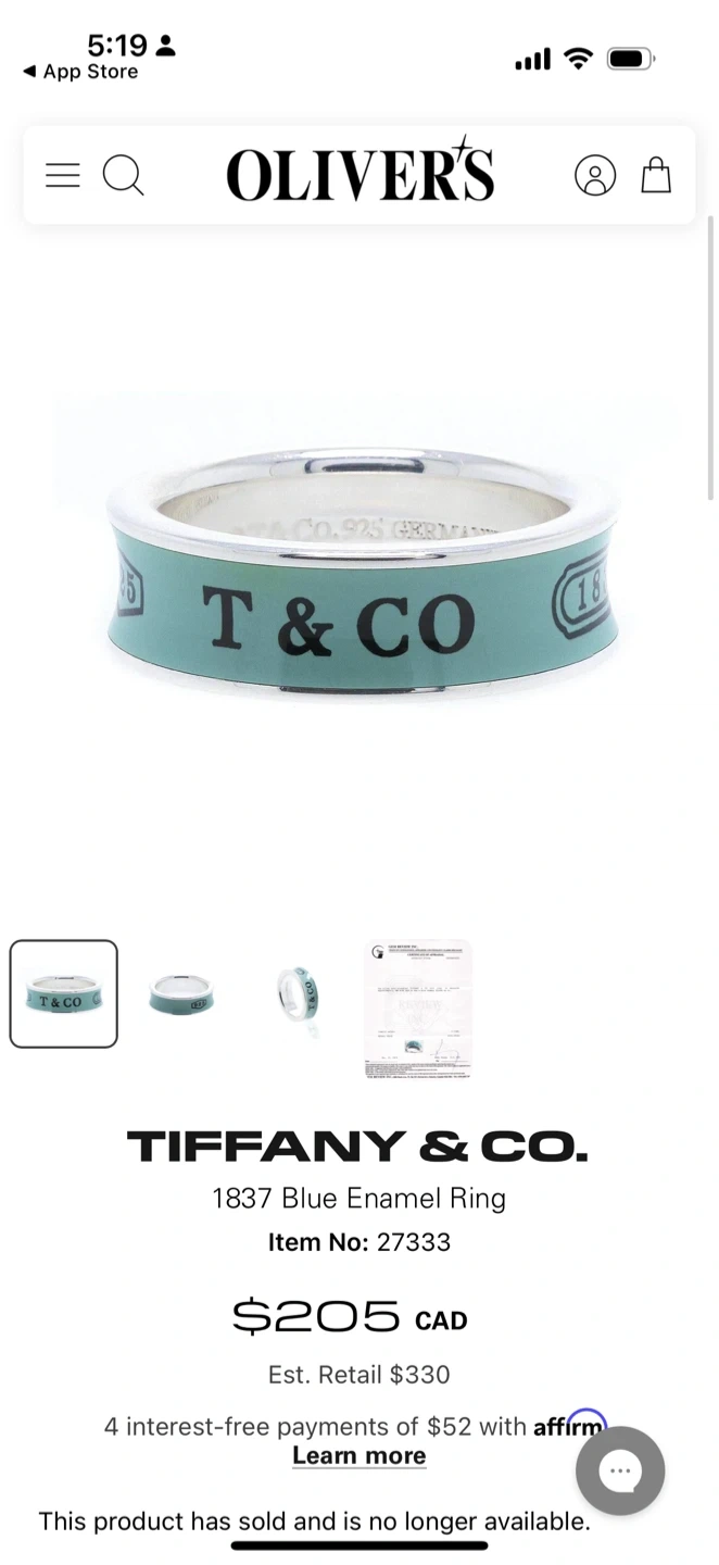 1000+Selling a RARE Vintage Tiffany & Co. 1837 Blue Enamel Ring! The ring is in great condition. Originally retailed for $330 CAD Finger size 5
