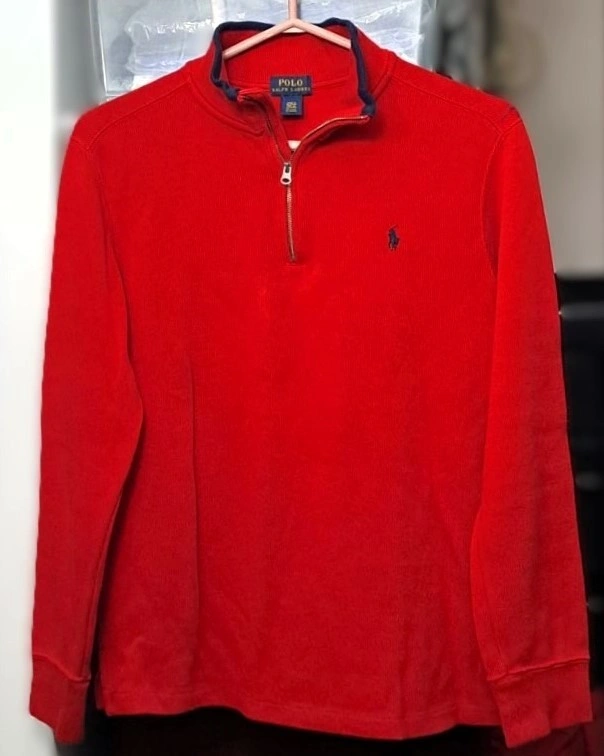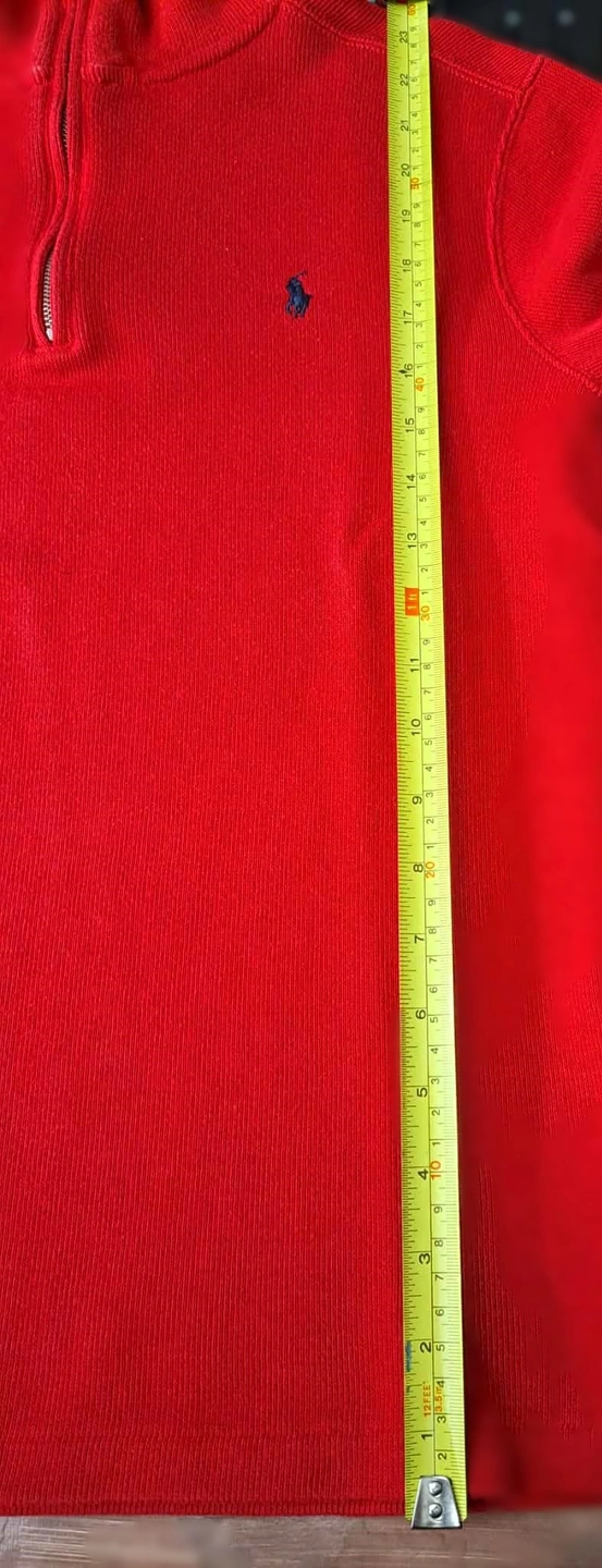 This Polo Ralph Lauren sweater is cotton knit sweater made from knitted cotton yarn. This sweater is breathable, soft, and comfortable, making it suitable for warmer weather or layering. It is ideal for wearing solo with jeans or layering under a jacket in transitional temperatures. It also features a ribbed mock neck with a quarter-length zip placket for adjustable styling and comfort. A signature Polo Pony logo is embroidered at the left chest. Gently used and in excellent condition. Unisex. Medium size for Women and Small size for Men. Measures Pit to pit (47 cm), Sleeve (56 cm), Length (60 cm). Please check the last 3 photos.