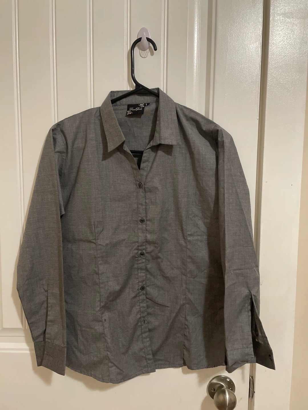 Here's a button-down shirt in size L. It's more like size S . Formal womens shirt. Never used . Just need to iron it. Its good to go. It looks big in picture.