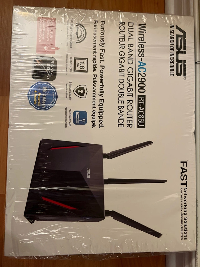 Selling a new ASUS RT-AC2900 RT-AC86U Dual-Band Gigabit WiFi Router, a powerhouse for your home network! This router delivers blazing-fast speeds and reliable connectivity. Key features include: * Dual-band capabilities * Gigabit Ethernet ports * USB ports for media sharing * Advanced security features This router is still available—snatch it up before it vanishes into the digital ether!